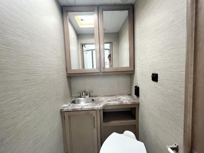 Whether you are couple or a family, this coach offers so many comforts you might never go back home! Beginning with the rear bedroom offering a walk-around queen bed with storage on each side, and the split bathroom allowing two people to get ready at once to the living room furniture that can double as sleeping space for overnight guests, this could be your perfect RV. There are full kitchen amenities such as a gas cooktop and microwave, plus the double door refrigerator is next to the mid-coach entry allowing you to grab a beverage on your way out to relax under the power awning with integrated LED lighting. There is more to enjoy like the 39" LED TV with swivel for the perfect view of the game, the dream dinette for dining and working, the sofa to relax on and the cab over bunk to take a nap.