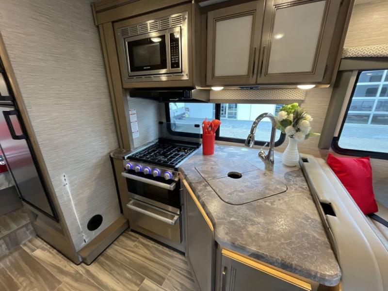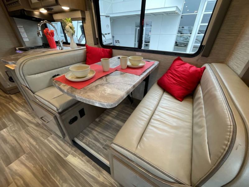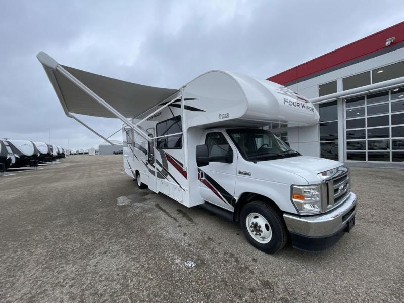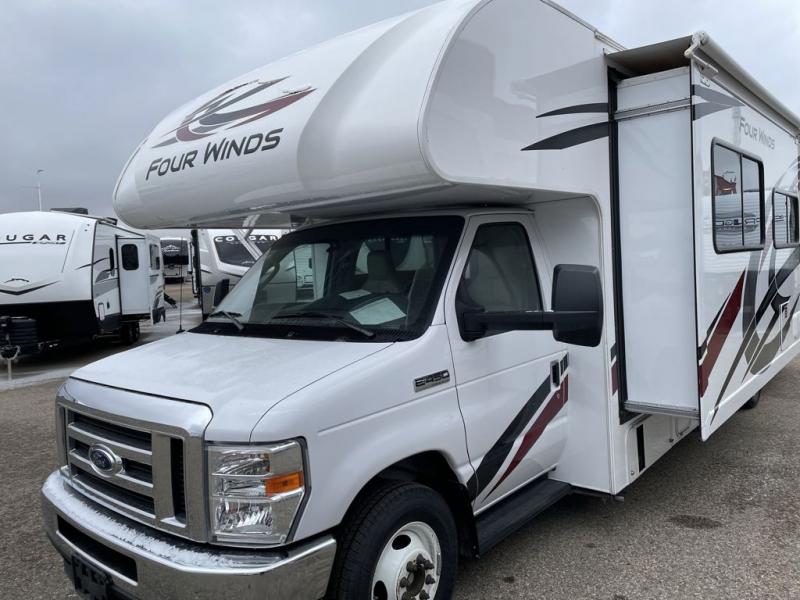 With any Four Winds Class C gas motorhome, you can travel in a trustworthy Ford E-Series chassis with 350HP. Each is built with welded sidewall cage construction and a welded tubular aluminum roof, a one-piece fiberglass cap, and includes a slick fiberglass exterior with graphics package for style and years of enjoyment on the open road. Inside, you will enjoy the well-equipped kitchen, the spacious bathroom, the sleeping accommodations and the Winegard ConnecT 2.0 WiFi/4G/TV antenna that allows you to stay connected. With several floorplans to choose from and options to add, you will surely find one that fits your family's needs or your friend's approval. Choose today!