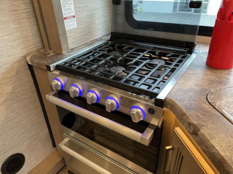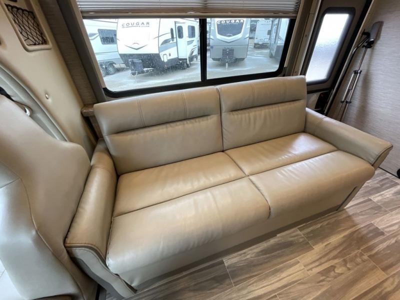 Perfect for a couple or a growing family, this coach will allow you to enjoy inside comforts and outdoor scenery where ever you drive and park! You will have great views out of the many windows when you are indoors, and the power awning offers an outdoor living area protected by the elements when you want some fresh air. The cook will love the large single bowl stainless steel sink with a single handle faucet with a pull-down sprayer when cleaning fruits and veggies, the gas cooktop and microwave when making meals, as well as the double door refrigerator to hold all the cold items. The slide out creates even more floor space, the furniture offers a place to dine and visit as well as sleep, and the private bedroom with a full bathroom just steps away will complete the deal!