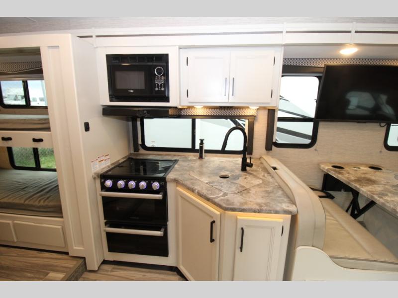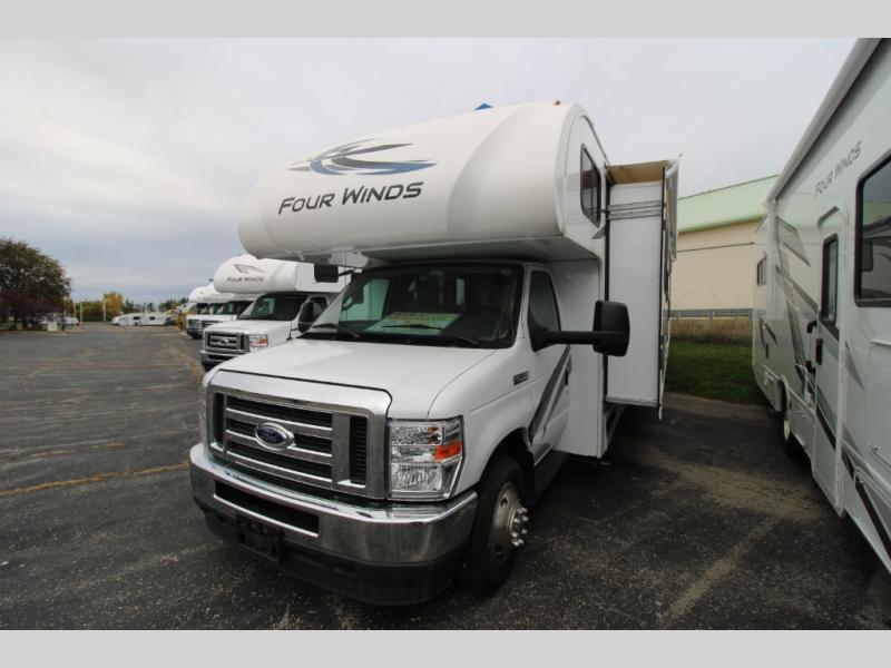 With any Four Winds Class C gas motorhome, you can travel in a trustworthy Ford E-Series chassis with 350HP. Each is built with welded sidewall cage construction and a welded tubular aluminum roof, a one-piece fiberglass cap, and includes a slick fiberglass exterior with graphics package for style and years of enjoyment on the open road. Inside, you will enjoy the well-equipped kitchen, the spacious bathroom, the sleeping accommodations and the Winegard ConnecT 2.0 WiFi/4G/TV antenna that allows you to stay connected. With several floorplans to choose from and options to add, you will surely find one that fits your family's needs or your friend's approval. Choose today!