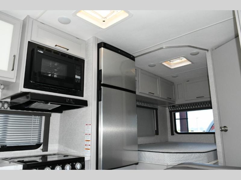Rear Corner Queen Bed – Your own cozy retreat with quick access to the full bath.