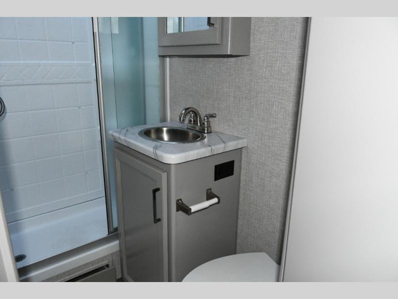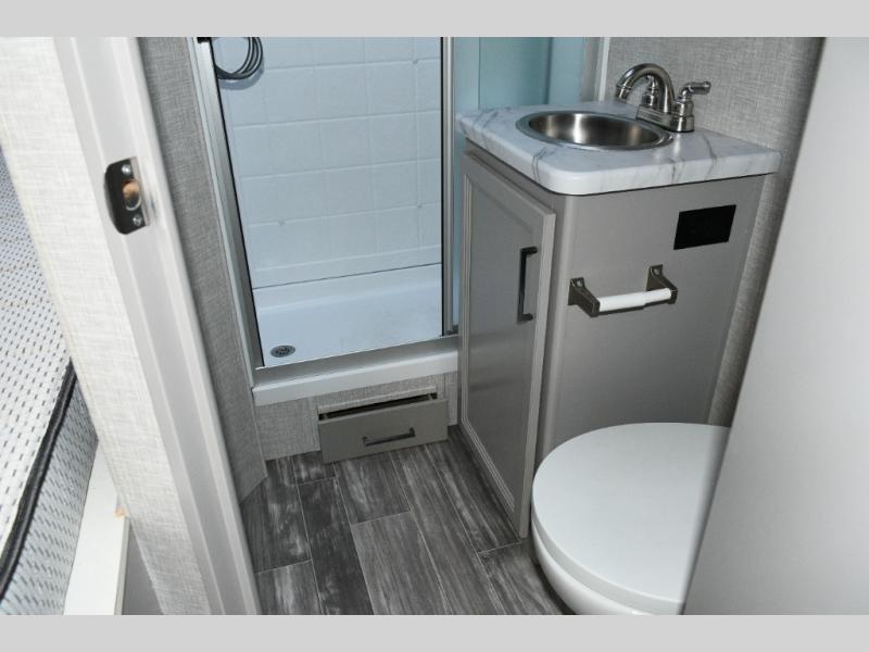 Rear Corner Full Bath – Stay fresh on the go with a shower, sink, and toilet.
