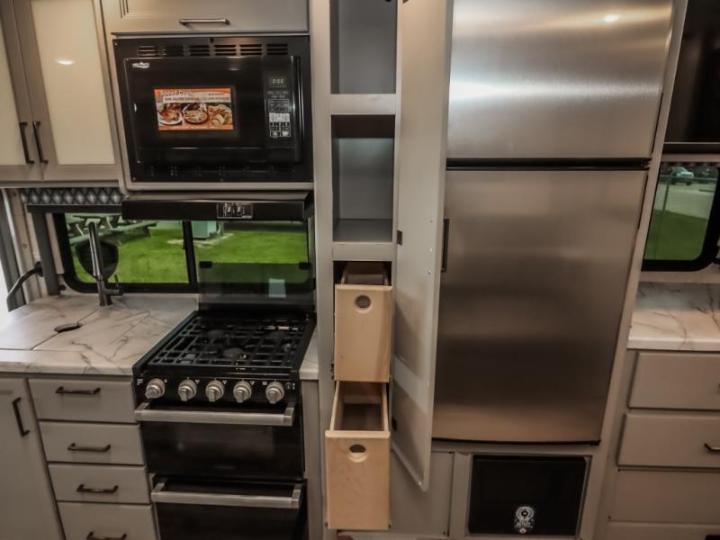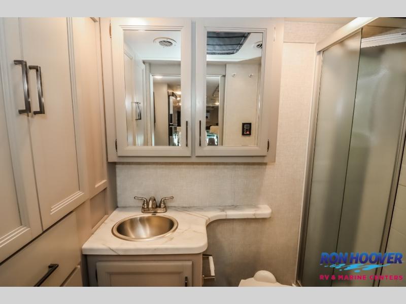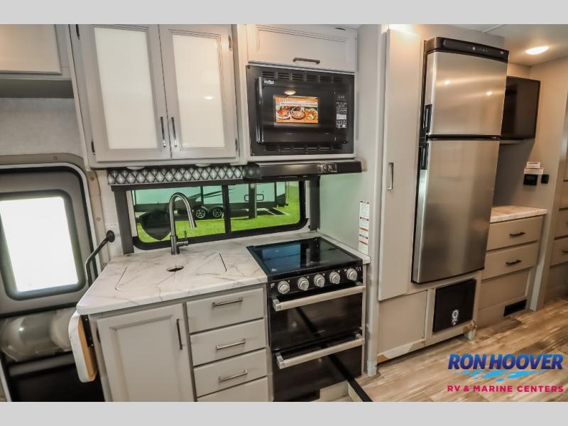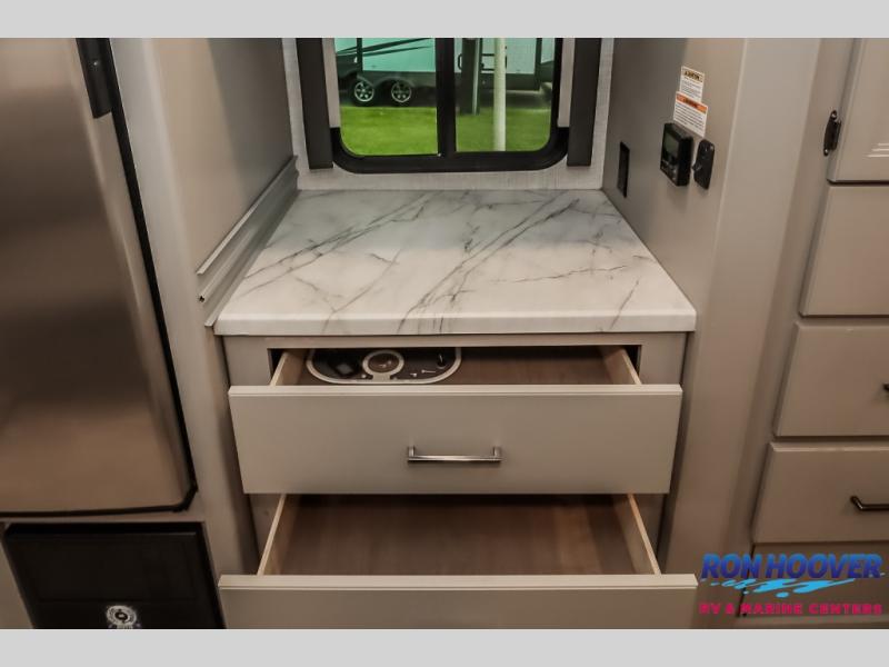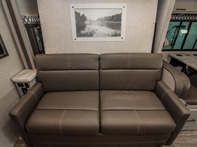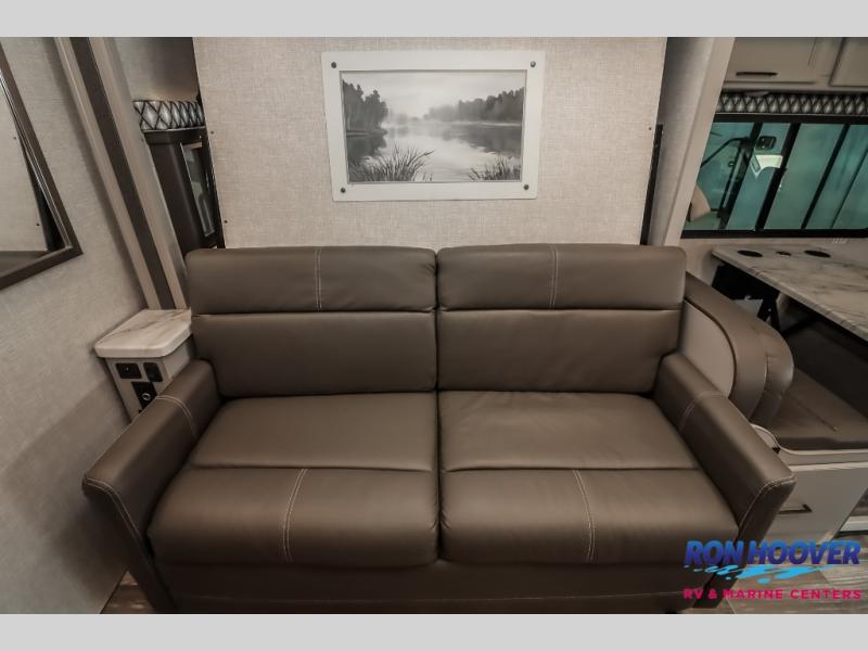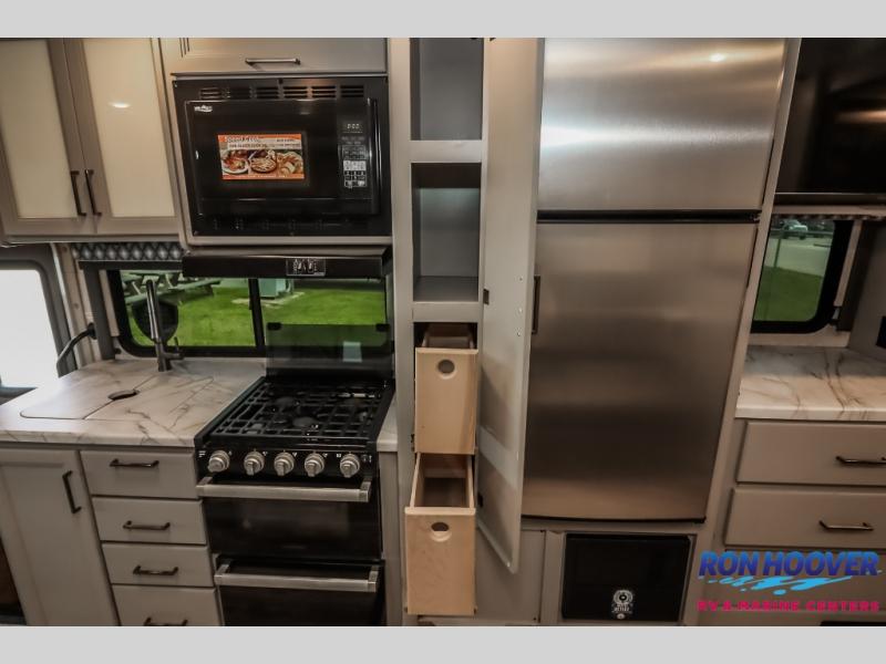 Whether you travel to see family or to explore new places, this coach offers a flexible living space that doubles as a bedroom with a privacy curtain. During the day you can relax on the sofa then at night easily setup the Murphy bed and watch the 32" TV above the dresser. The cook will love the galley kitchen with everything nearby including the flip-up counter and the pantry. The dream dinette provides dining space, a work area as well as sleeping space, and the cab-over bunk will surely be a popular space for the kids, grandkids or even yourself thanks to the built-in skylight. And you can watch the 40" TV on swivel or head outside to watch the exterior 32" TV while enjoying the protection from the power awning with integrated LED lighting.