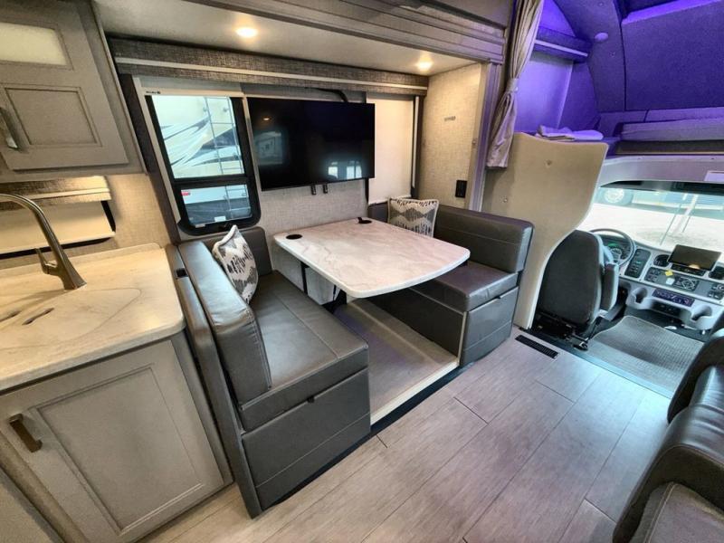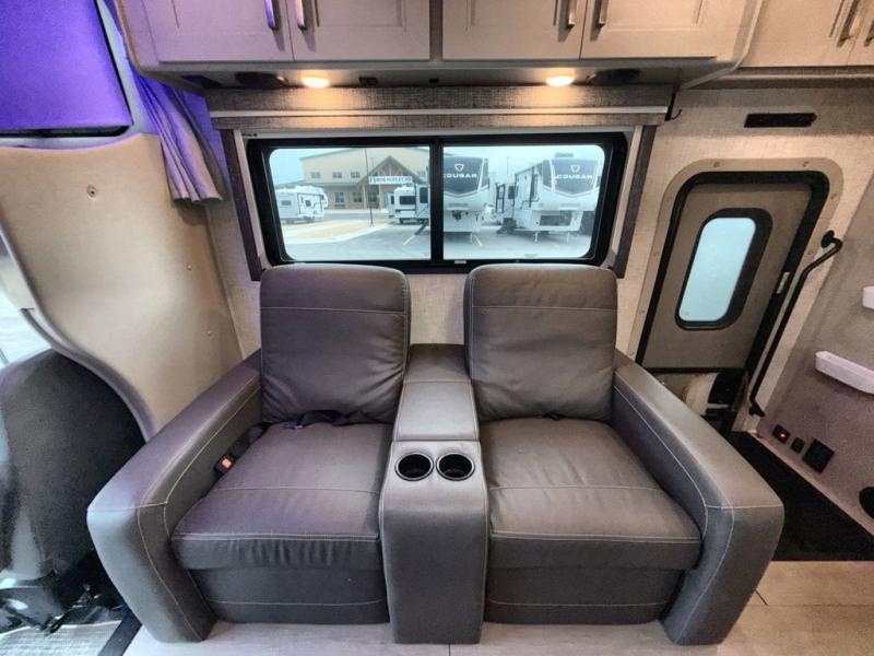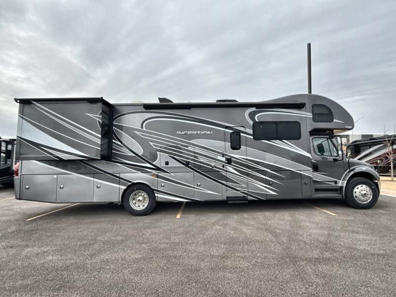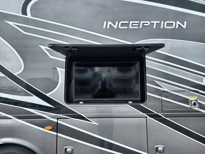 Every aspect of these Thor Motor Coach Inception Super C diesel motorhomes have been designed to increase your comfort of living on the road! The foundation is built with a custom S2RV Freightliner chassis and its power comes from an ISB-XT Cummins 6.7L 360 HP engine. It will be hard to ignore these modern masterpieces on the road with their sleek and functional fiberglass front cap with windshield. The cab-over windshield provides enhanced visibility and more natural light, and the massive external basement pass-through storage area is perfect for surfboards, fishing poles, folding bikes, and other outdoor gear. Entertainment is found all throughout between the Winegard ConnecT that works as a WiFi extender, the 4G hotspot, the TV antenna, and the LED TVs in the living area, bedroom, and exterior. Come find your favorite one today!