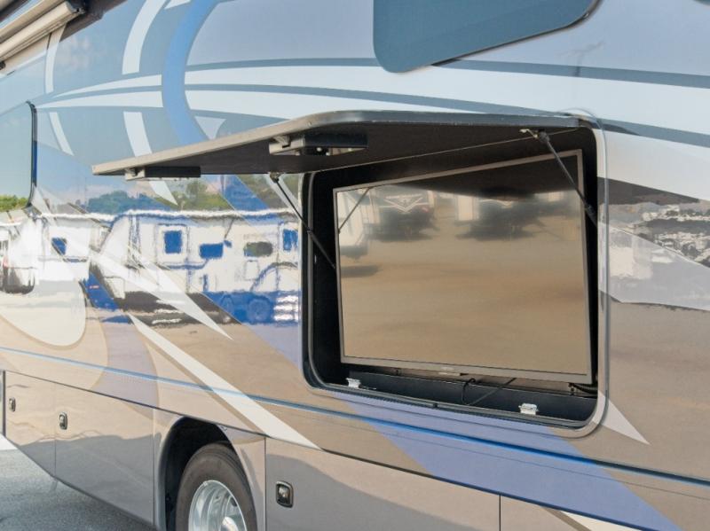 Enjoy the great outdoors under the 20' power awning with LED lighting, and catch the game or your favorite show on the 40" exterior TV.
