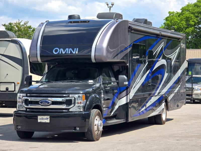 The Omni Super C diesel motorhome by Thor Motor Coach starts with a durable welded tubular steel floor, vacu-bond laminated roof, walls, and floors with block foam insulation, and a full-body paint package with gel-coat sidewalls. Each model includes either a F550 or F600 Power Stroke 4 x 4 Turbo Diesel engine that will allow you to maneuver tougher terrain when the adventure calls for it. The cockpit is every captain's dream with its power adjustable driver's seat, side view and back-up camera system, heated remote exterior mirrors, and more. You can control all of your coach's functions with the RapidCamp+ multiplex wiring control system, and the Winegard ConnecT Wi-Fi extender with 4G will allow you to stay in touch with the outside world as you travel. Each model includes residential linoleum throughout, Leatherette furniture, solid surface countertops in the kitchen, and a glass shower door for that added touch of luxury. Come see all the other great features the Omni Super C diesel motorhome has to offer!