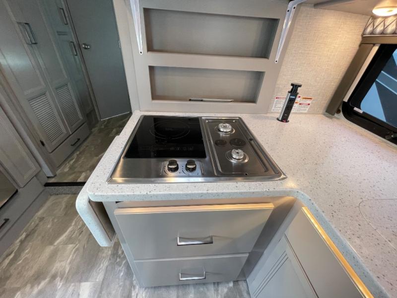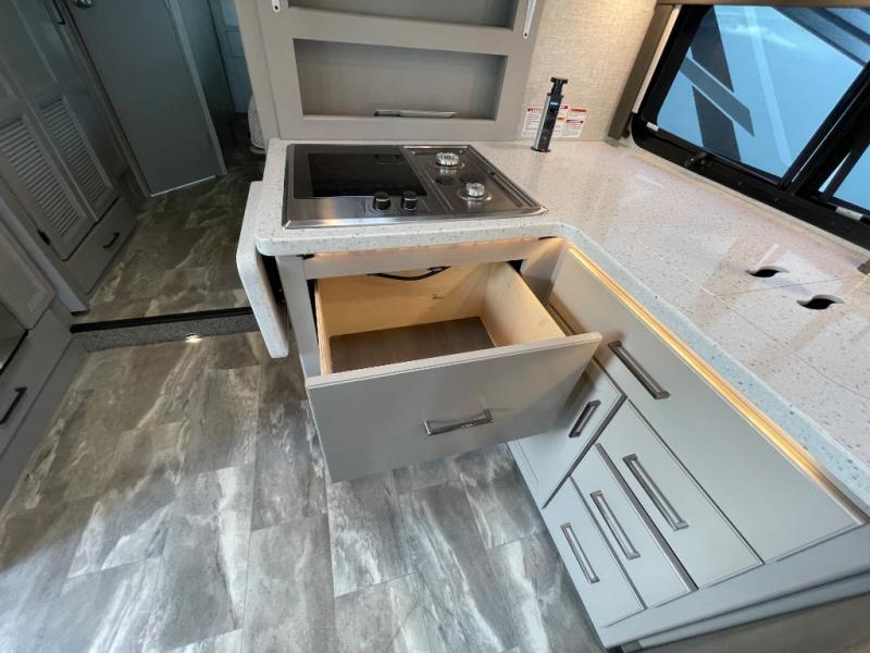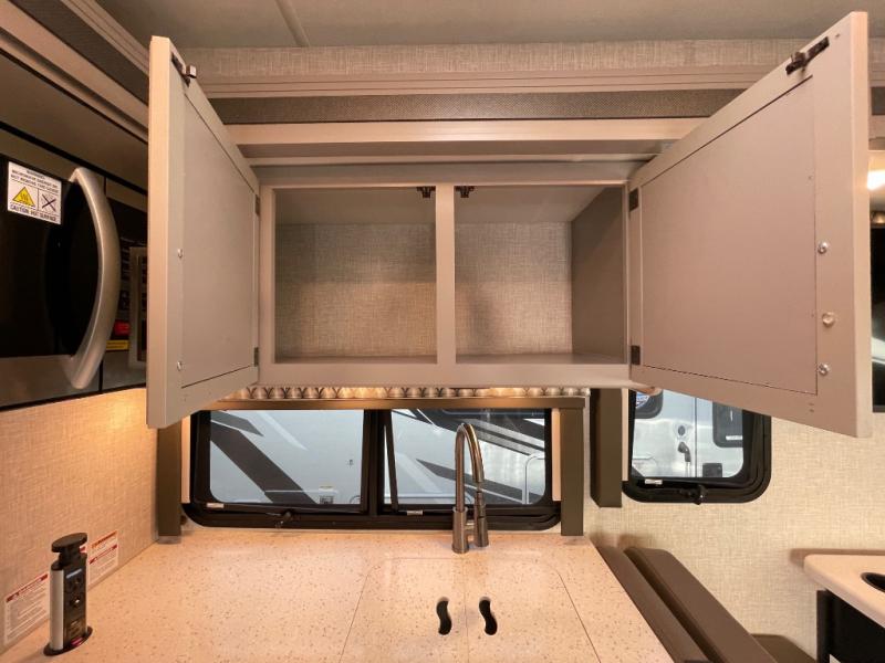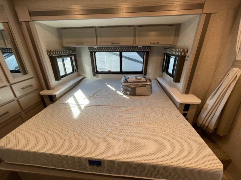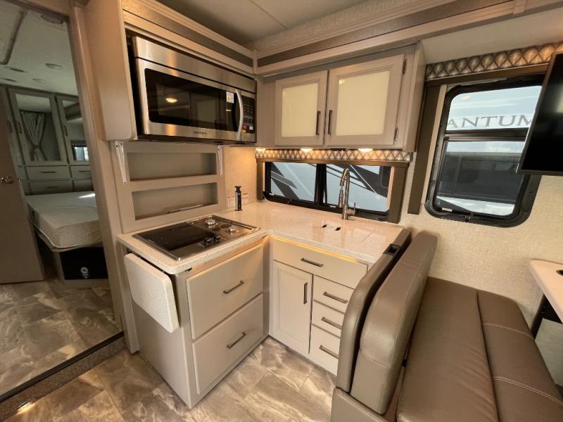 With any Quantum Class C gas motorhome, the construction includes a welded tubular steel floor, a welded tubular aluminum roof and sidewall cage construction, premium one-piece exterior roofing, plus frameless slider windows. The interior offers decorative glass inserts in the kitchen overhead cabinet doors and kitchen accent countertop lights for style, full extension metal ball-bearing drawer guides, plus a 7-inch touchscreen dash radio with Google Android Auto-Apple CarPlay with a back-up monitor the driver will appreciate. All 31-foot Quantum motorhomes offer the SmoothTECH ride suspension by Mor-Ryde to provide you the most comfort as you travel. No more dreaming, you can choose your favorite Quantum and start your RVing lifestyle!