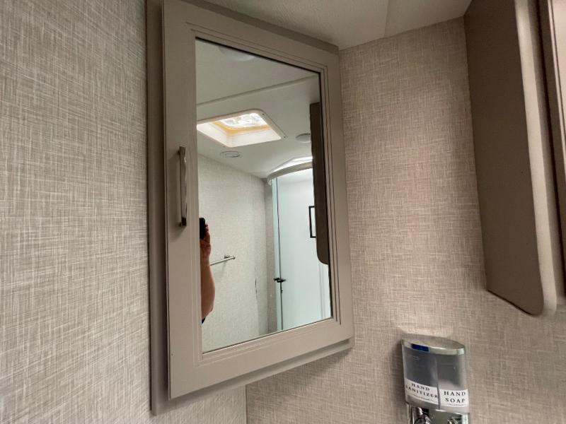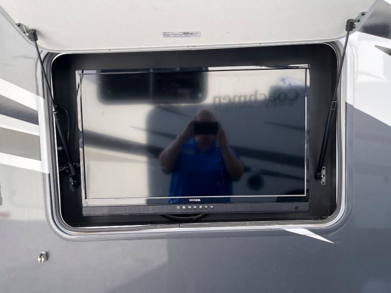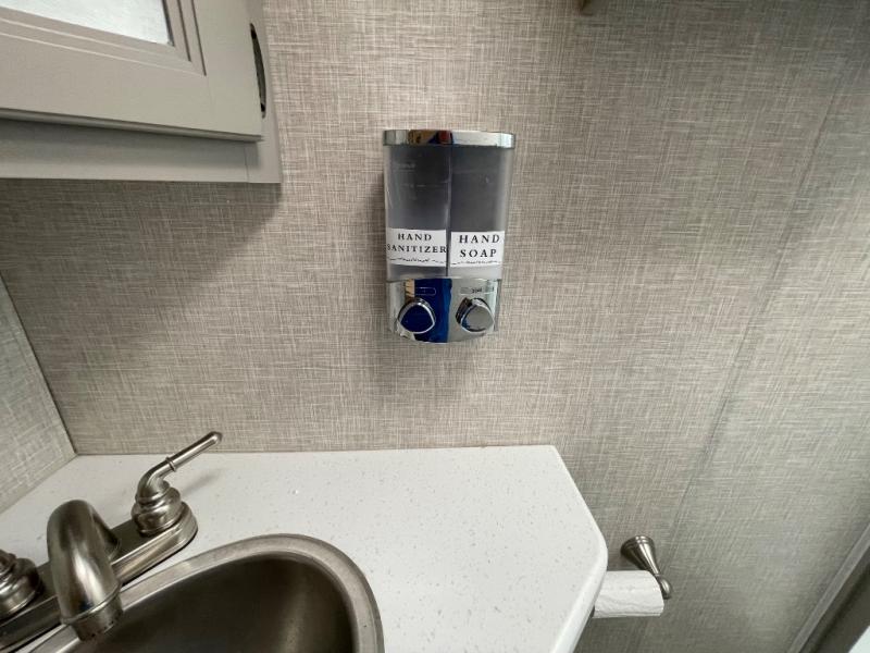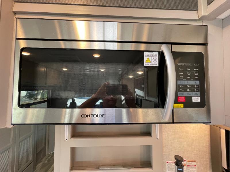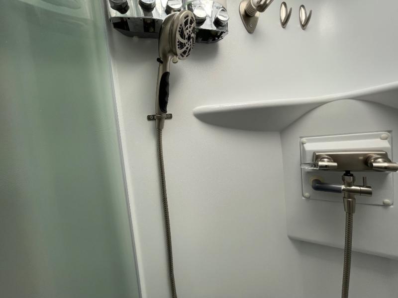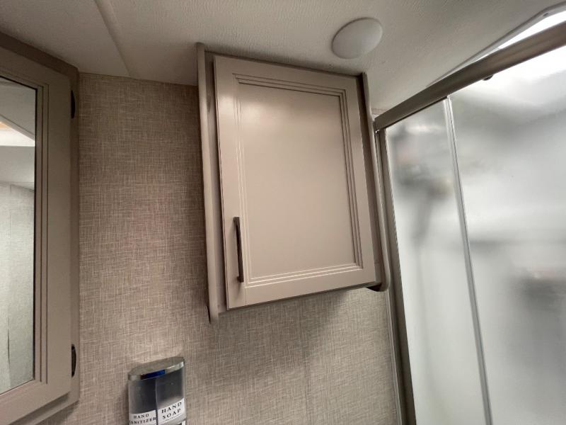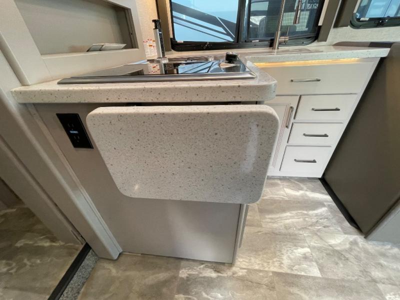Whether you are looking for a private bedroom or a semi-private bedroom in your next coach, this Quantum gives you the choice. There is a privacy curtain to close off the king bed slide in back including the wardrobe and the 32" TV, or you can close the sliding door to create a private bedroom to include a full bathroom, linen storage and a closet that is prepped for a washer/dryer option. The mid-coach entry gets you inside quickly with easy access to the refrigerator or the jack-knife sofa, and the slide out in this area offers a 70" Dream dinette and an L-shaped counter with microwave overhead and a stainless steel sink plus flip-up countertop extension. The kids or your guests can sleep on the cab overhead bunk or any furniture once converted. The built-in skylight over the cab will be great for added light from the moon at night or sun during the day. And the exterior offers a 40" TV to enjoy while outdoors.