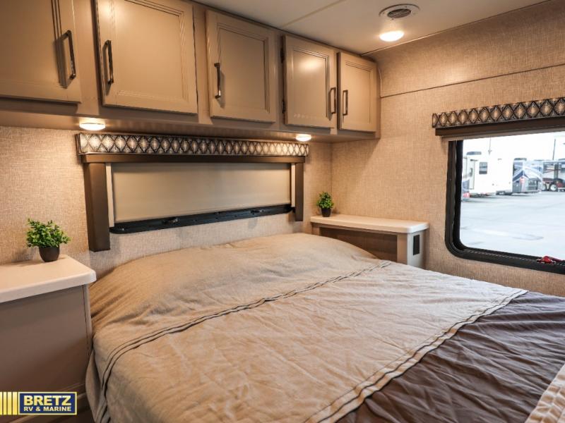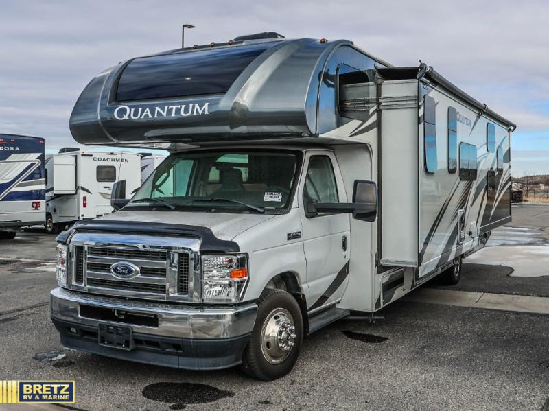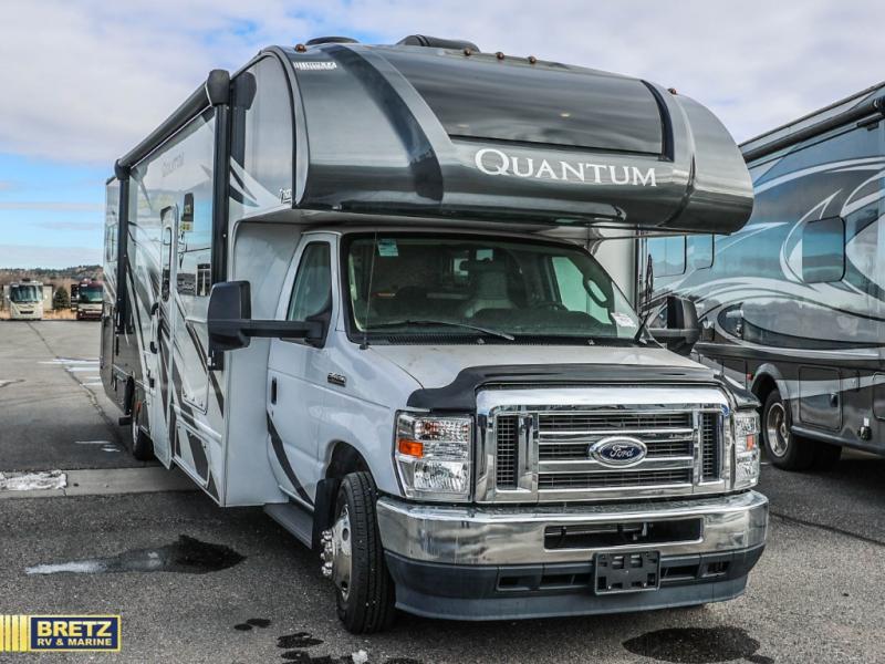 With any Quantum Class C gas motorhome, the construction includes a welded tubular steel floor, a welded tubular aluminum roof and sidewall cage construction, premium one-piece exterior roofing, plus frameless slider windows. The interior offers decorative glass inserts in the kitchen overhead cabinet doors and kitchen accent countertop lights for style, full extension metal ball-bearing drawer guides, plus a 7-inch touchscreen dash radio with Google Android Auto-Apple CarPlay with a back-up monitor the driver will appreciate. all 31-foot Quantum motorhomes offer the SmoothTECH ride suspension by Mor-Ryde to provide you the most comfort as you travel. No more dreaming, you can choose your favorite Quantum and start your RVing lifestyle!