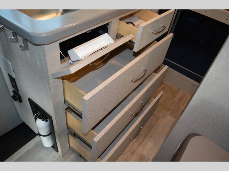 The most relaxing vacation you'll ever have is in the Thor Motor Coach Tranquility Class B diesel motorhome! These vans have four-wheel drive so that you can travel effortlessly, and the interior is a tranquil environment where you can enjoy cool breezes coming through the sliding entryway door with screen and the rear screen door. You'll be able to stay connected whenever you want with the Winegard® ConnecT 2.0 4G/Wi-Fi/digital TV antenna, and you can also use the electronics station with HDMI cable and USB charging ports to keep your devices powered. Getting off grid is easier than ever with the solar charge control with 200W solar panel because it allows you to dry camp, and you can plan to stay off grid even longer with the Re(Li)able power pack electrical system that comes with a 400Ah lithium battery, a 3,000W pure sine inverter, and a 170 amp alternator.
