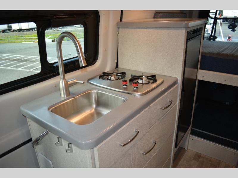 Make your journeys memorable with this Tranquility Class B diesel motorhome! You can use the swivel cab seats as an additional seating space in the main living area, and the removable table in front of the seating area will give you an easy way to enjoy meals or play games. As you spend your time indoors, you can let the outdoor air come streaming through the large opening windows, and you will definitely enjoy being able to prepare an afternoon lunch or midnight snack with the two-burner gas cooktop in the kitchen. This model also includes a rear sleeping area with side flairs, plus a rear screen door if you want to let the night air in while you sleep!
