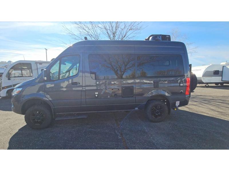 With any Sanctuary Class B diesel motorhome, you can explore off-grid thanks to the solar charging system which includes a 200-watt solar panel and charge controller to keep your house batteries full without overcharging. The Winegard ConnecT 2.0 works as your WiFi extender, 4G hotspot and TV antenna in case you need to stay connected, and the Thule accessories provide the adventurer a bike rack, a powered awning, and a roof ladder. Each is built on a Sprinter 2500 4x4 camper van chassis or optional 4x2 with a Mercedes Benz 3.0L turbo diesel engine offering 188 HP so you can take the path less traveled and set up camp in the great outdoors!
