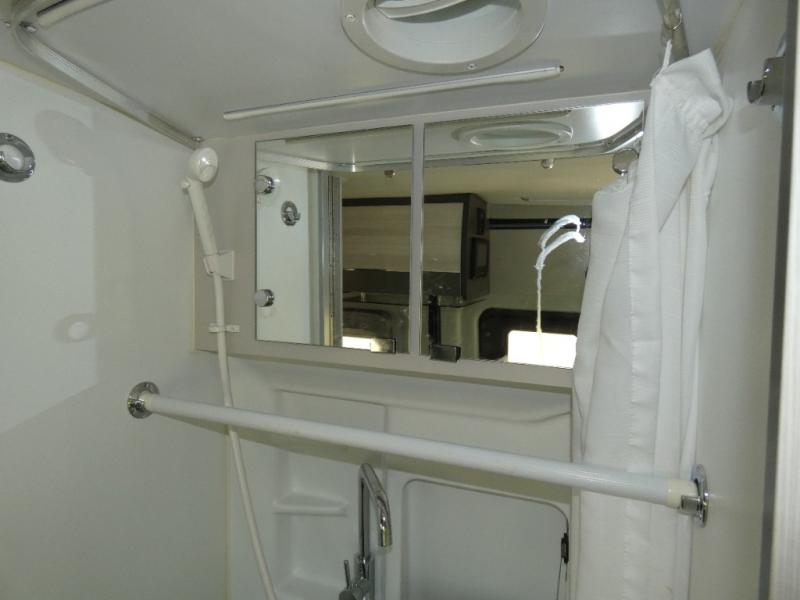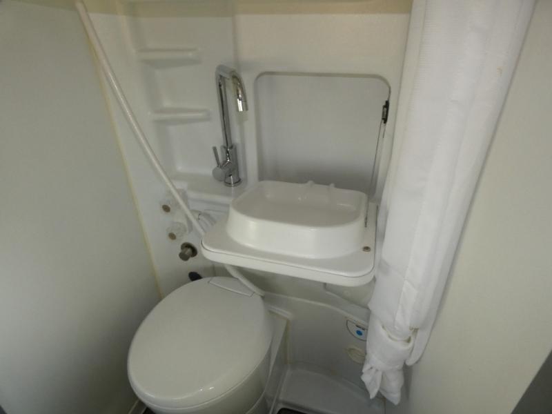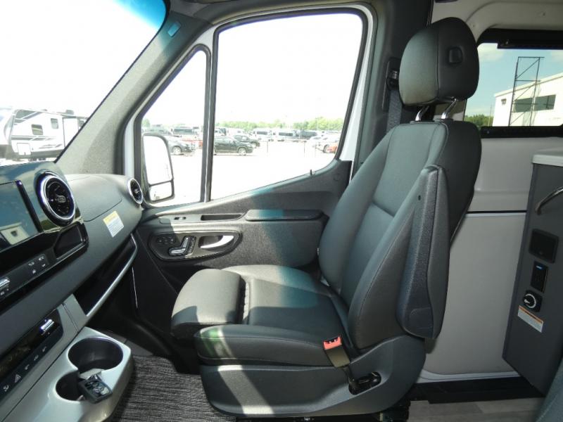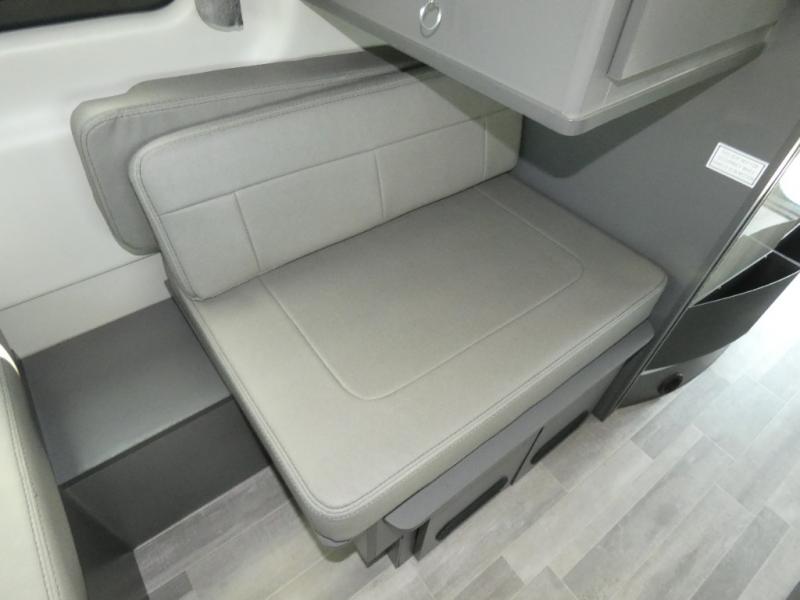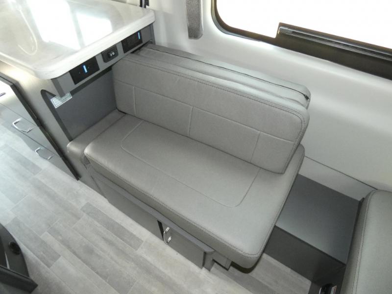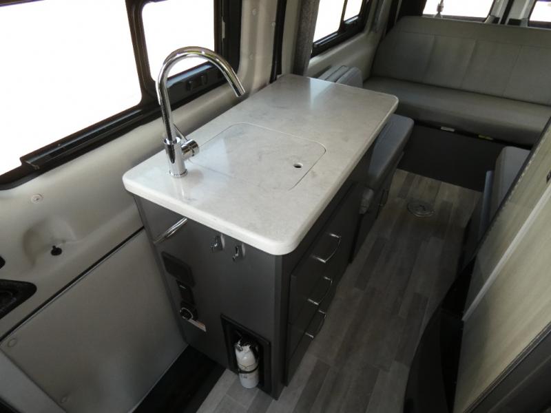 Calling all outdoor enthusiasts to explore the unknown sites in this camper van for two! The captain's chairs swivel for more seating space once at your destination, and the rear sofa folds out to offer a 70" x 72" sleeping space. You can watch the 24" TV before bedtime, and get cleaned up in the wet bath. The kitchen area features a single door, electric refrigerator, a microwave oven, plus a solid surface countertop and single bowl sink. You can even enjoy dining outside using the fold-out exterior table. When traveling the rear sofa offers three sets of seatbelts for safety.