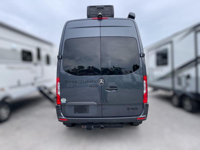 With any Sanctuary Class B diesel motorhome, you can explore off-grid thanks to the solar charging system which includes a 200-watt solar panel and charge controller to keep your house batteries full without overcharging. The Winegard ConnecT 2.0 works as your WiFi extender, 4G hotspot and TV antenna in case you need to stay connected, and the Thule accessories provide the adventurer a bike rack, a powered awning, and a roof ladder. Each is built on a Sprinter 2500 4x4 camper van chassis or optional 4x2 with a Mercedes Benz 3.0L turbo diesel engine offering 188 HP so you can take the path less traveled and set up camp in the great outdoors!