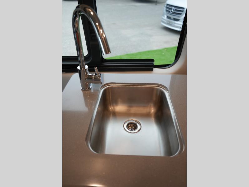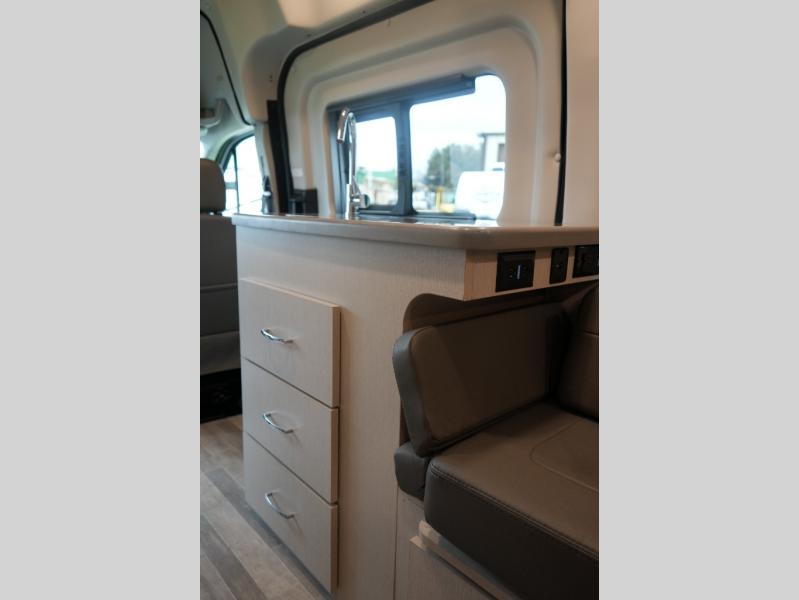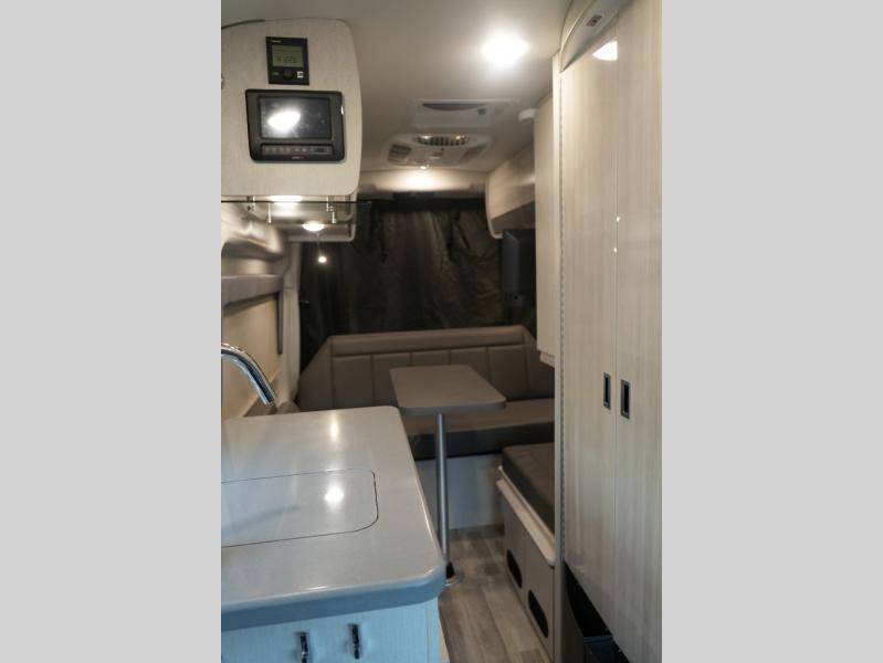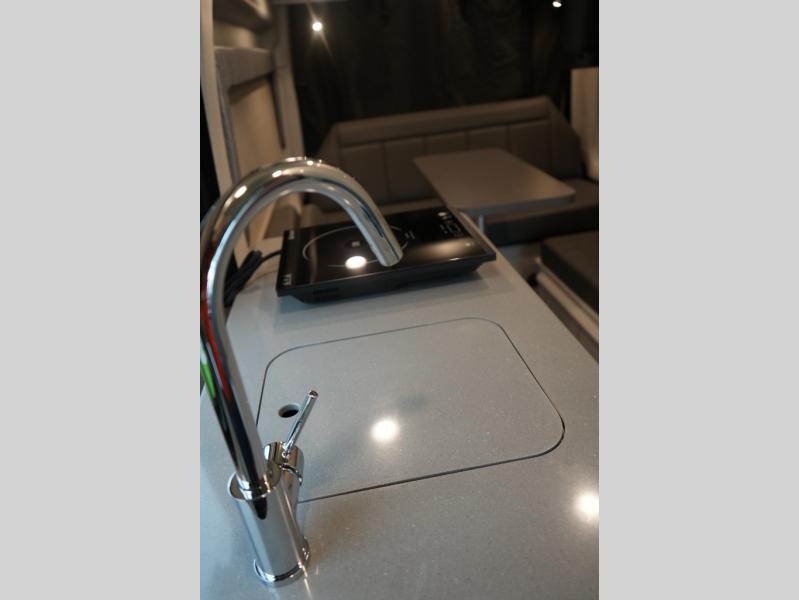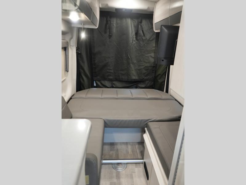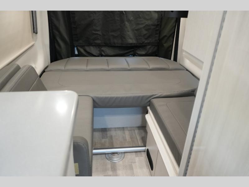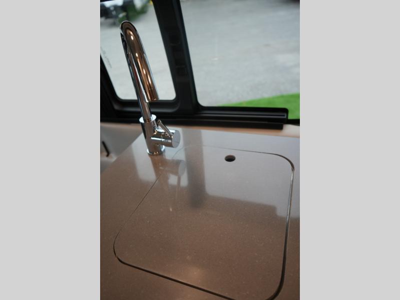 The Sanctuary Transit Class B gas motorhome by Thor Motor Coach starts with a Ford Transit all-wheel drive (AWD) chassis to tackle tougher terrain and travel more roads. After you've explored all day, you will love coming back to find large opening side windows to let fresh air in, along with lightweight cabinetry, vinyl flooring, and a solid surface countertop in the kitchen. The Rapid Camp+ multiplex wiring control system puts you in control of your camper van's functions, and the Re(Li)able Power Pack electrical system provides power to go off-grid when the adventure calls for it. You will also enjoy the Thule lateral arm power awning with integrated LED lighting, the Thule roof ladder, and the top mounted LED light bar with a cover for a sleek look at night. Choose the Sanctuary Transit camper van for all your outdoor excursions!
