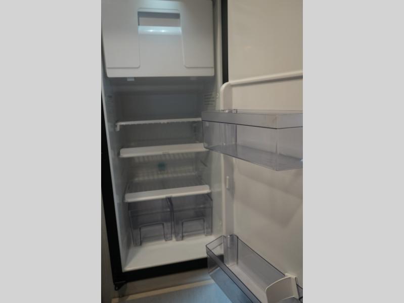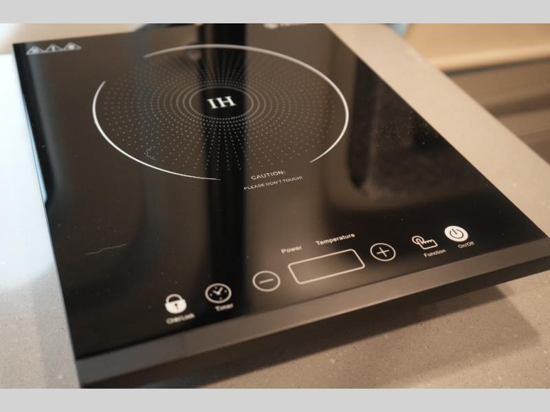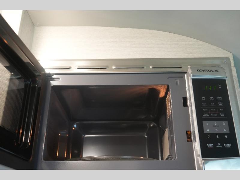 Pack your bags and head to your favorite state park in this Tranquility Transit coach! When you arrive at your destination you can prepare a quick meal before heading out to find a trail to explore. The kitchen offers a microwave oven, a single door, electric refrigerator and stainless single bowl sink. For cooking, you will also find a dual burner cooktop (earlier 2023 product year models), or portable one burner electric plug-in induction cooktop, please see dealer for in stock inventory. The wet bath will allow you to freshen up when you return, and there is even a power bath vent to keep everything fresh. This model includes a fold out sleeping area with a removable table that will provide a place to dine in the morning, and the storage cabinet here will be perfect for your belongings. You will also love the rear screen door and the entryway screen door to enjoy those cool evenings without the bugs! Please note: floorplan depicts later production year model with counter area to use portable one burner plug-in induction cooktop.