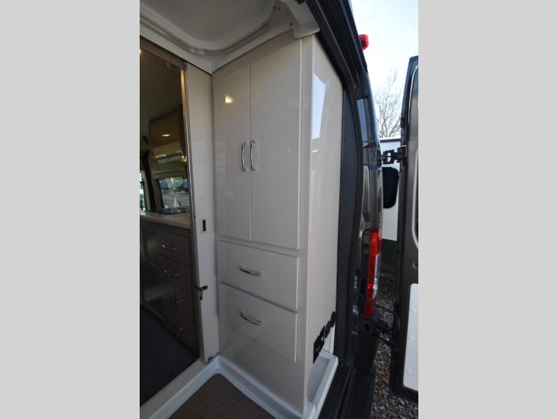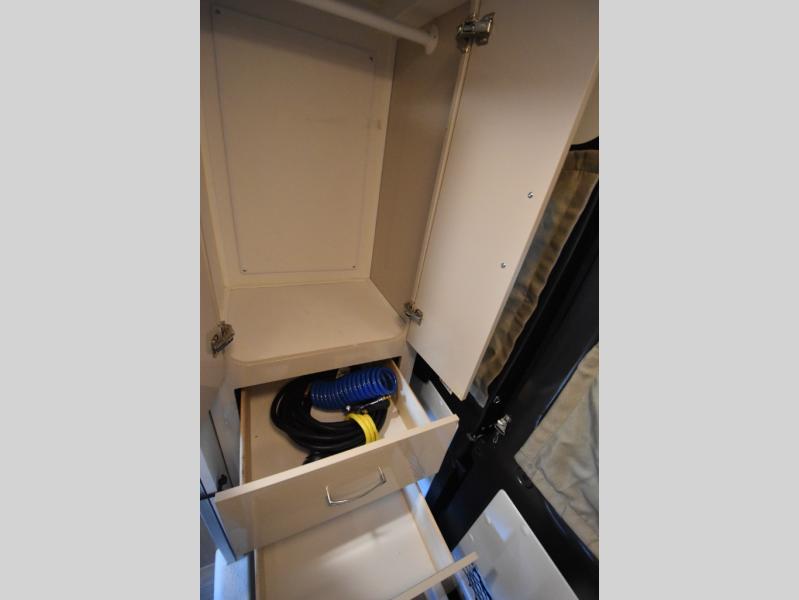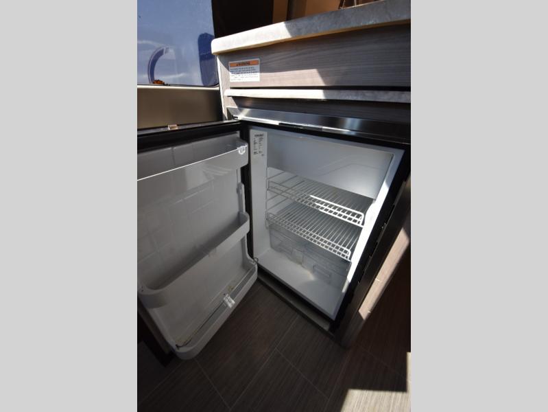 You can go wherever your heart desires with this motorhome! The rear wet bath adds comfort and convenience, plus there is storage to keep your towels close. You can prepare home cooked meals while at the campsite or cook some burgers for a tailgate with the two burner gas cooktop while enjoying a cold beverage kept in the single door stainless electric refrigerator. The swivel captain's chairs are not only comfortable for driving, but also for socializing with guests. The 72" x 47" pull out bed has a removable table and is across from the electronics cabinet which has a HDMI cable and USB charging port.