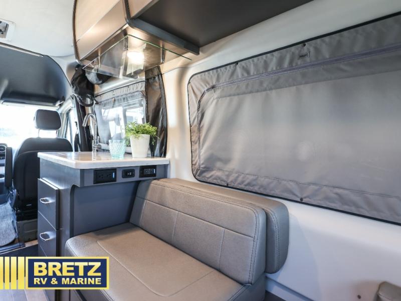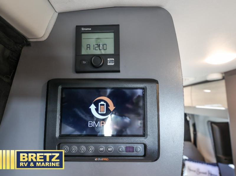 The Tranquility Class B gas motorhome by Thor Moto coach. Luxury amenities are found throughout, including TecnoForm Euro-style cabinetry, premium pull-down shades, a solid surface countertop in the kitchen, and Welformed interior wall panels. The driver will appreciate the keyless entry system, the tilt and telescoping leather steering wheel, and the back-up monitor for hassle-free parking. There is also a Truma Combi Eco furnace and water heating system onboard, as well as a Re(Li)able Power Pack electrical system, a Rapid Camp+ multiplex wiring control system, plus many more amenities. Experience the luxurious and exciting way to travel; in a Tranquility Class B gas motorhome!