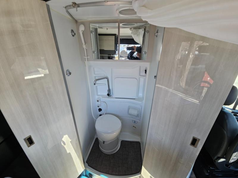Nothing is more tranquil than this Tranquility Class B diesel motorhome! Enjoy the freedom to create delicious meals while on the road with the two-burner gas cooktop and a microwave oven, and keep your leftovers and favorite foods chilled in the single-door electric refrigerator. There is an electric fold-out sleeping area with a removable table, plus a 24" TV to keep you entertained. This model also includes a wet bath with a cassette toilet, a power bath vent, plus a shower with a deluxe curtain.