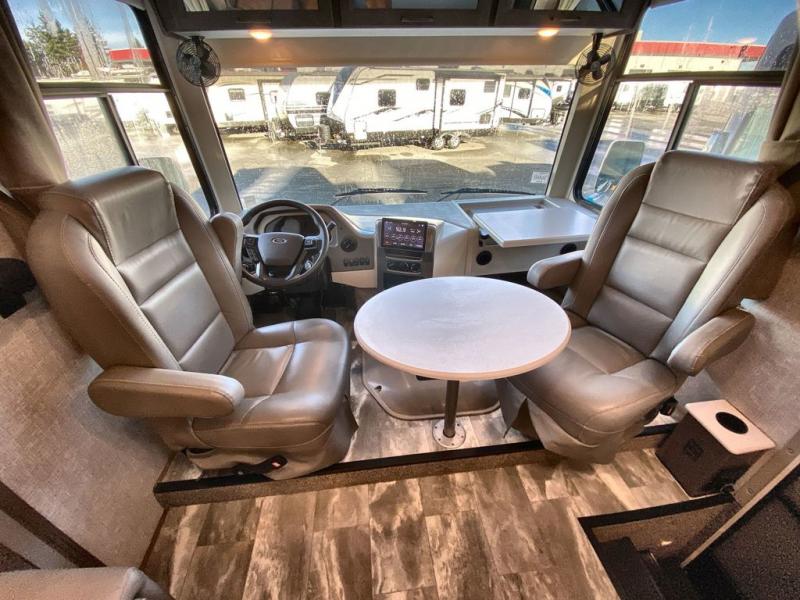 There are all sorts of adventures to be had with the Thor Motor Coach Windsport Class A gas motorhome! Built on a Ford F-53 chassis, the Windsport will gather lots of attention with its HD-MAX® exterior with graphics package. It also offers you a basement pass-through storage and a Pet-Link™ multi-purpose tie-down. The Bird's Eye™ window is so easy to see through in the cockpit, and there are reclining/swivel leatherette captain's chairs to relax in while you travel. The Winegard® ConnecT™ Wi-Fi extender +4G will allow you to post on your social media or send an email from the cockpit's dash work station, and the Rapid Camp+® multiplex wiring control system with Bluetooth and 10" touchscreen will allow you to control and monitor the various electrical systems on your coach.
