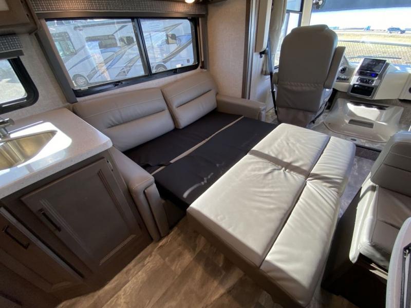 There are all sorts of adventures to be had with the Thor Motor Coach Windsport Class A gas motorhome! Built on a Ford F-53 chassis, the Windsport will gather lots of attention with its HD-MAX® exterior with graphics package. It also offers you a basement pass-through storage and a Pet-Link™ multi-purpose tie-down. The Bird's Eye™ window is so easy to see through in the cockpit, and there are reclining/swivel leatherette captain's chairs to relax in while you travel. The Winegard® ConnecT™ Wi-Fi extender +4G will allow you to post on your social media or send an email from the cockpit's dash work station, and the Rapid Camp+® multiplex wiring control system with Bluetooth and 10" touchscreen will allow you to control and monitor the various electrical systems on your coach.
