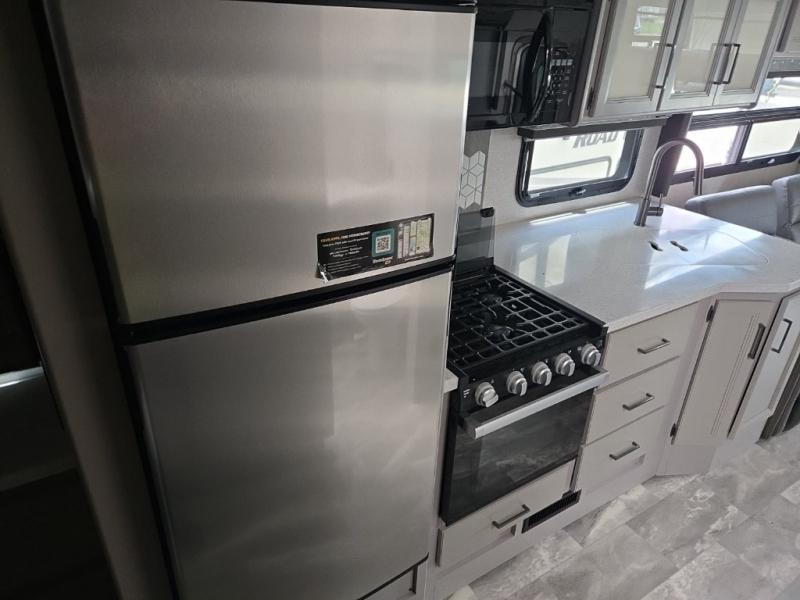 This Windsport Class A gas motorhome is going to be an amazing way to vacation! You will be living in luxury back in the private bedroom because of the king bed and 32" LED TV, and you have exceptional convenience with the exterior 32" TV and exterior kitchen when relaxing outside. Now you can have a movie night out under the stars with the snacks being prepared right there with you. Back inside, you'll appreciate having a 68" jack-knife sofa to relax on, a three-burner stove to cook on, and a coffee table between the cab seats to set your drinks on. The bathroom contains a 24" x 36" shower with a skylight to help you stay fresh, and there is a glass door included in the shower.