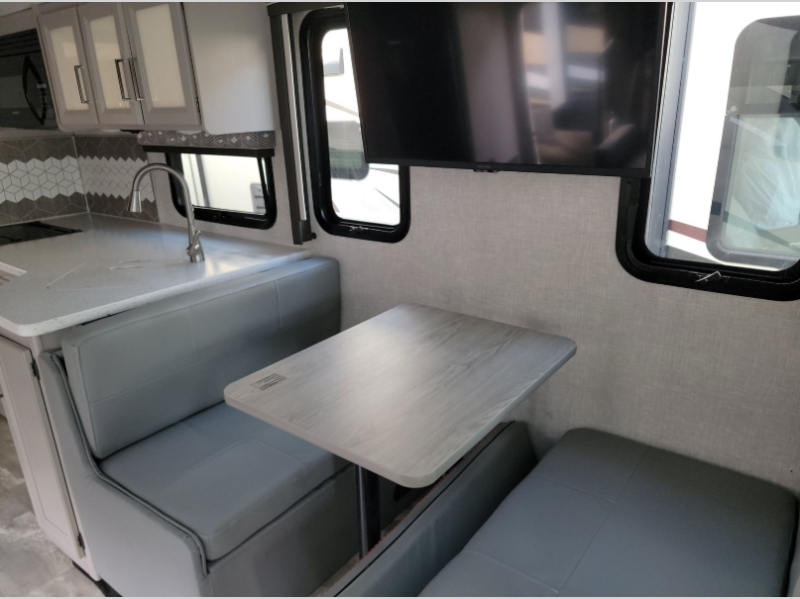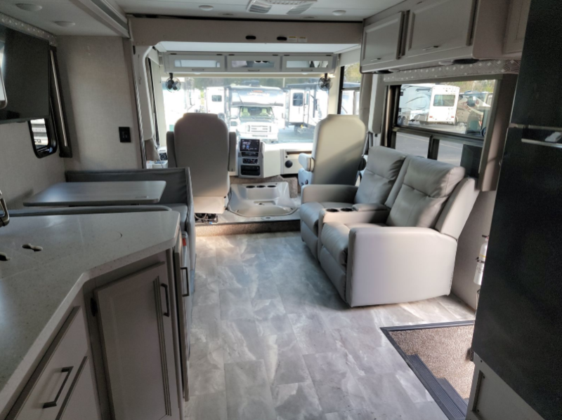 There are all sorts of adventures to be had with the Thor Motor Coach Windsport Class A gas motorhome! Built on a Ford F-53 chassis, the Windsport will gather lots of attention with its HD-MAX® exterior with graphics package. It also offers you a basement pass-through storage and a Pet-Link™ multi-purpose tie-down. The Bird's Eye™ window is so easy to see through in the cockpit, and there are reclining/swivel leatherette captain's chairs to relax in while you travel. The Winegard® ConnecT™ Wi-Fi extender +4G will allow you to post on your social media or send an email from the cockpit's dash work station, and the Rapid Camp+® multiplex wiring control system with Bluetooth and 10" touchscreen will allow you to control and monitor the various electrical systems on your coach.