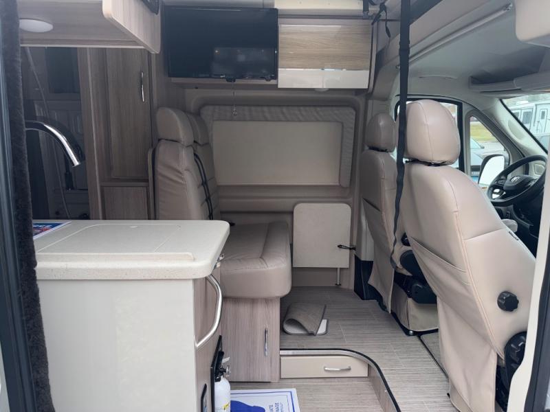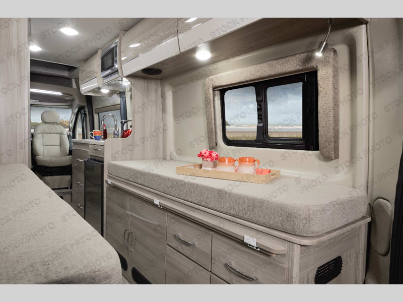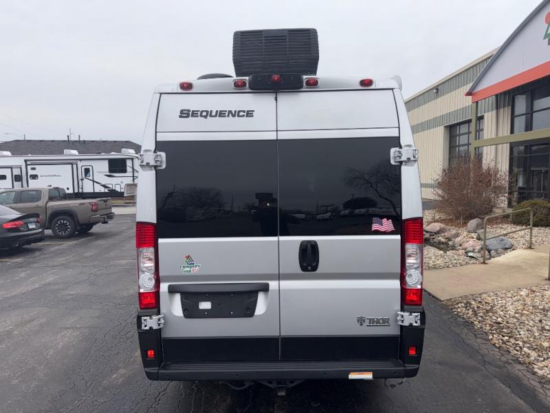Each one of these Thor Motor Coach Sequence Class B gas motorhomes are built with a RAM Promaster 3500 XT window van chassis and powered by a fuel-efficient V-6 engine for an easy drive, economical explorer van! Their internal storage capacity is increased by the driveshaft not running to the rear making it possible for the holding tanks, electrical components, and LP systems hidden underneath. They are Thule equipped with a roof ladder to view your destination in a different perspective, a bike rack for two adult bikes, and a lateral arm patio awning with integrated LED lighting. Modern living and convenience is what you will find throughout the interiors with a premium touchscreen dash radio, Apple Car Play and Android Auto that connects your favorite music and podcasts through USB or Bluetooth, and TecnoForm S.P.A. Euro-style cabinetry. Plus, there is residential vinyl flooring so you can bring your furry friend along and not worry about messes becoming stains!