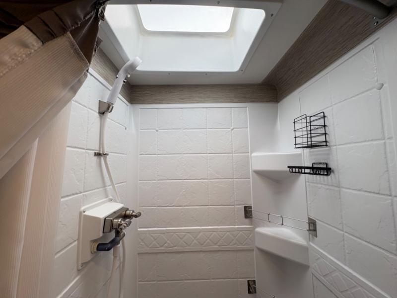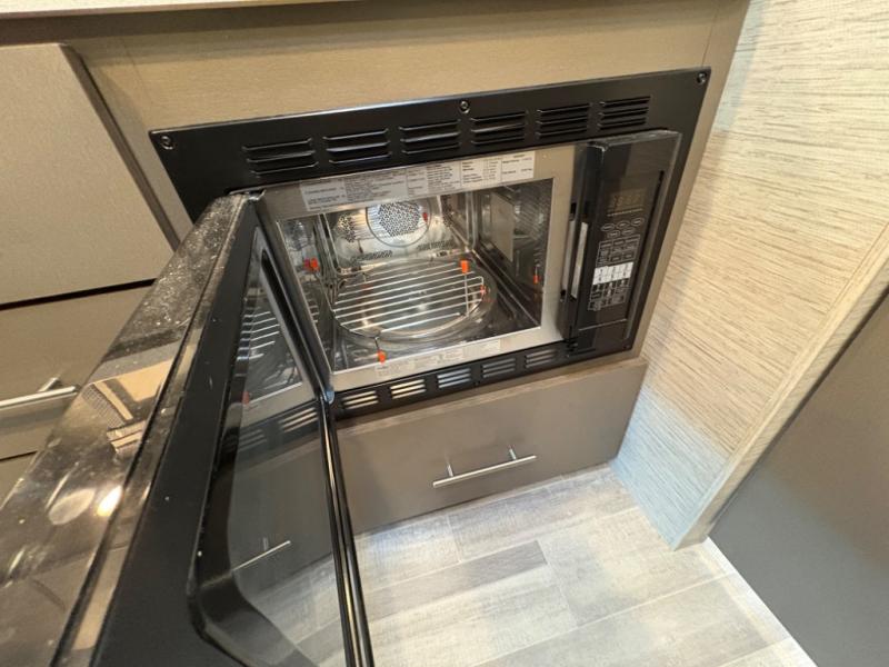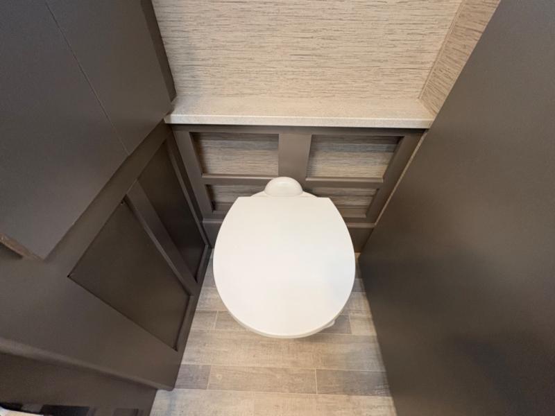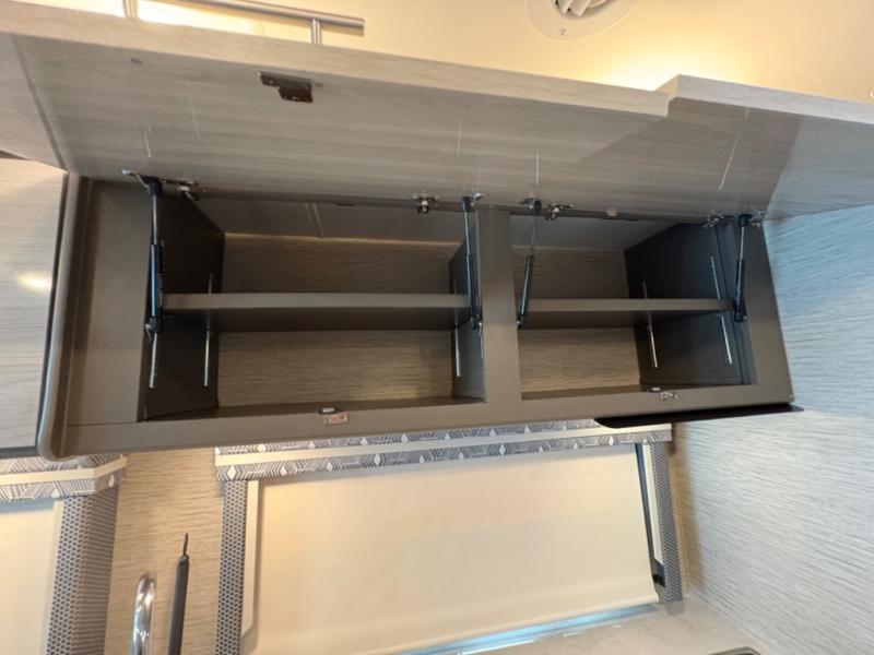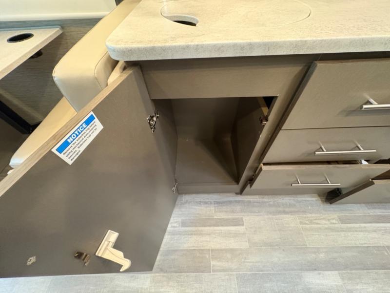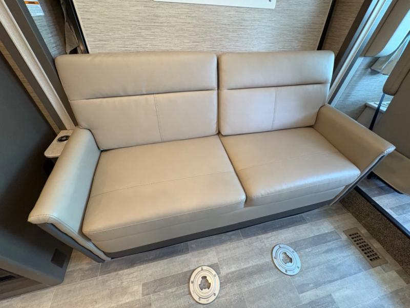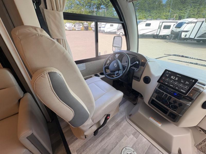 This Vegas Class A gas motorhome is worth checking out! It offers you a kitchen complete with a convection microwave, a pantry, a double-door refrigerator, and a two-burner gas cooktop. The rear bathroom is convenient and private with a linen closet, a 24" x 36" shower with a deluxe curtain and curved rod, a skylight, and a stainless steel sink. The front cab has a stow-away coffee table sitting in between the reclining/swivel cab seats, and the removable pedestal table sits in front of the 67" sofa when the 60" x 74" queen Murphy bed is folded away.