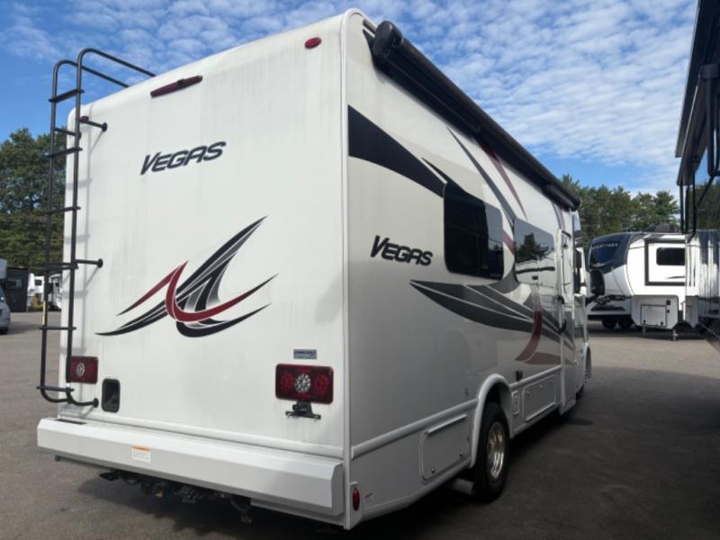 You'll find excellent drivability with the Thor Motor Coach Vegas Class A gas motorhome! These RUVs (Recreational Utility Vehicle) have been built intentionally as a short Class A RV on a Ford E-Series chassis. They allow you to set up camp with ease thanks to the Rapid Camp+ multiplex system which is your all-in-one control center. You won't even have to get up while you're outside relaxing when you want the power patio awning to extend because you can open it with the click of a button on your phone. If you hook up a grill to the exterior LP connection, you'll also have a place to cook while you're outdoors, and the optional 100W solar panel with a controller helps you get away from the crowds. The HD-MAX exterior with graphics package will catch everyone's eye at the campground, and you can bring all sorts of campsite activities in the lighted rotocast storage compartments.