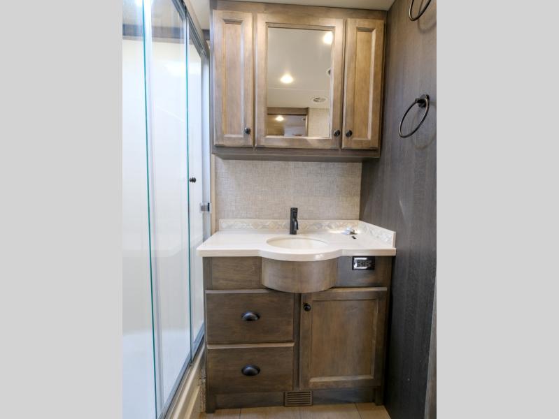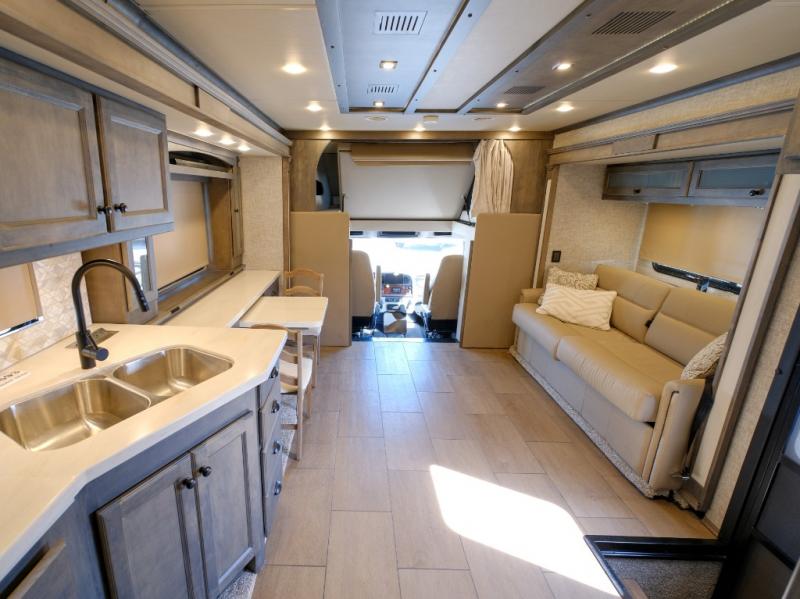 Each Allegro Bay Super C diesel coach by Tiffin Motorhomes sits on a durable Freightliner Custom S2RV chassis with an impressive 360 HP Cummins B6.7 engine for power you can feel. You will appreciate smooth handling thanks to the Trac-Tech full-time NoSPIN differential single rear axle and the automatic traction control. There is a manual release valve for the rear air suspension for added convenience, plus a 12,000 lb. towing capacity that will allow you to bring along the family car or even a horse trailer! This coach includes a Truma AquaGo Comfort instant water heater, AGM extended cycle house batteries, an 8.0 Onan QD generator, plus many more top of the line amenities. Once you enter inside, you'll instantly feel at home with solid surface countertops, luxury vinyl tile throughout, a spacious full bath, plus a memory foam mattress. It's time to let more comfort in with an Allegro Bay Super C diesel motorhome!