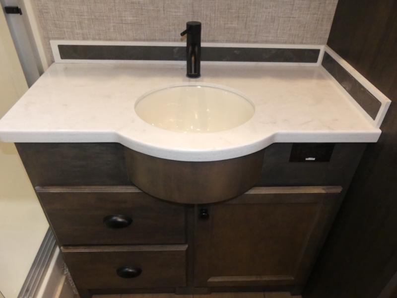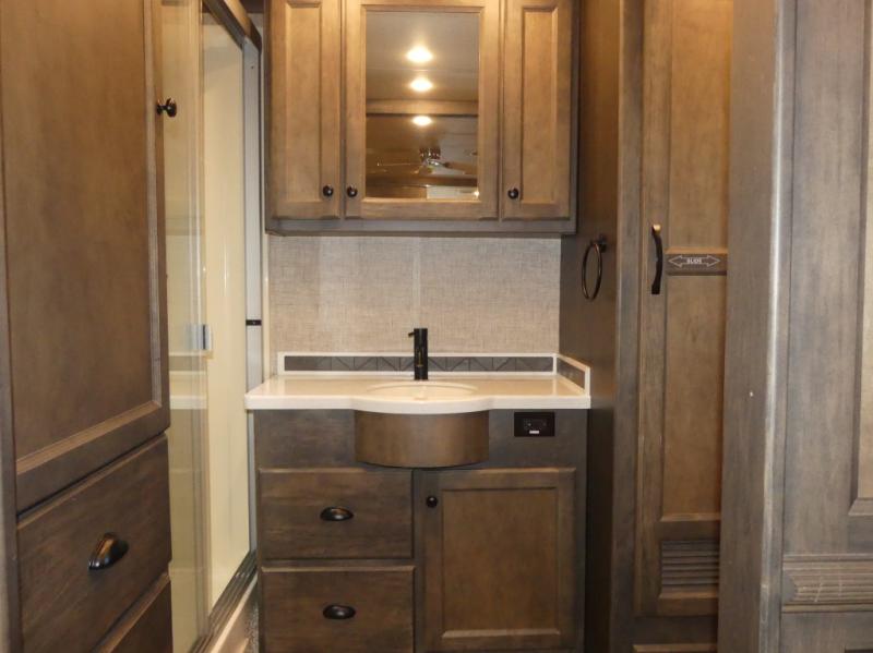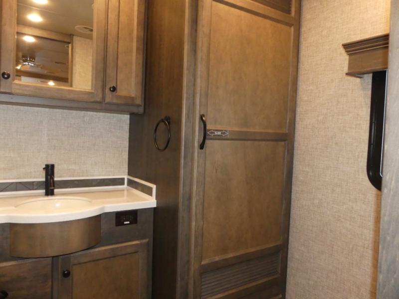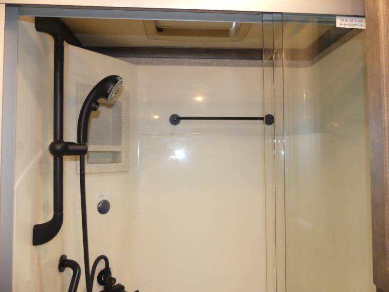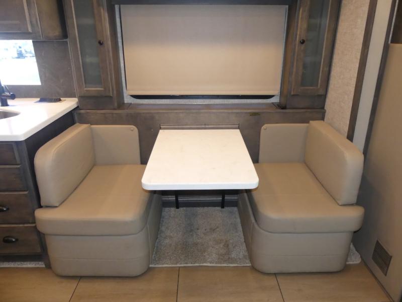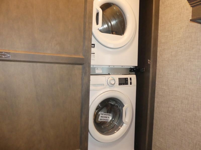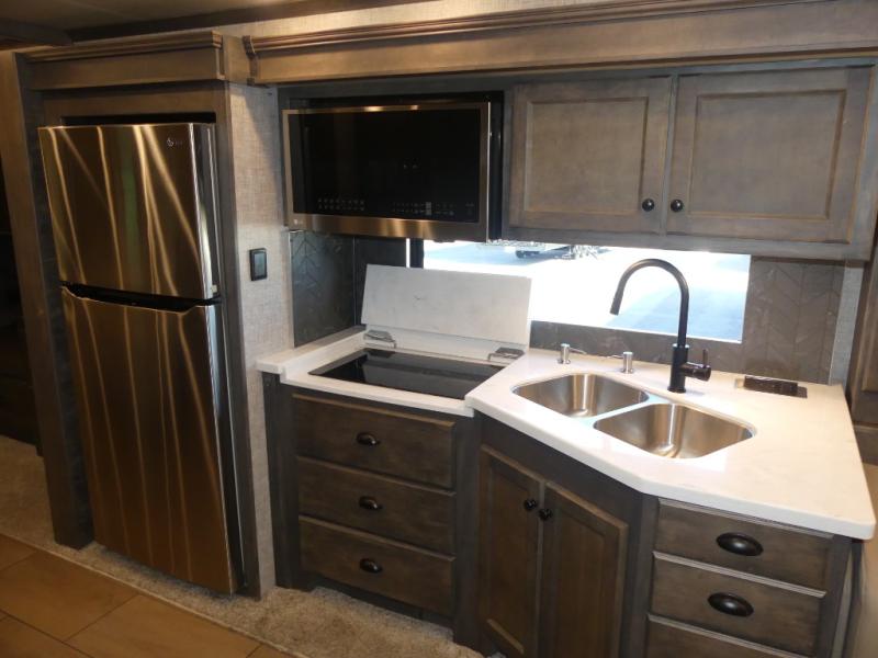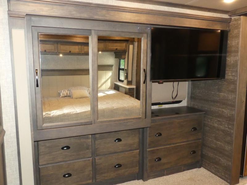 You're going to love the amount of space you having in this coach thanks to the full-wall slide and two additional slides. There is a bath and a half that is sure to come in handy when traveling with friends and family, plus sleeping space for six or seven. The master bedroom will feel just like home with its queen bed, wardrobe with drawers below, plus a flat panel TV! And your guests can sleep on the sofa bed, the booth dinette, and the overhead bunk. This model includes a full kitchen with a three burner cooktop, a convection microwave, a counter extension, plus a stainless steel residential refrigerator for all your perishables. There are many options to choose from, including theater seating, a dining bar with a lift TV, plus an optional stacked washer and dyer and more!