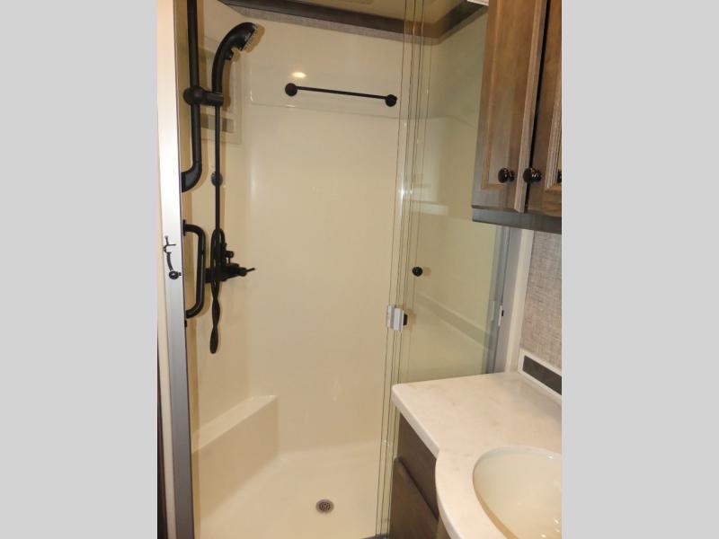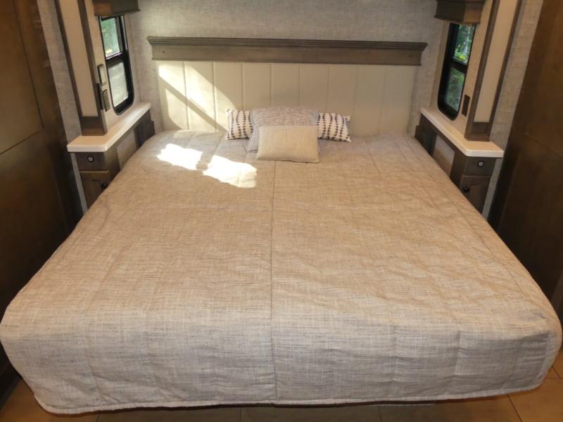 Each Allegro Bay Super C diesel coach by Tiffin Motorhomes sits on a durable Freightliner Custom S2RV chassis with an impressive 360 HP Cummins B6.7 engine for power you can feel. You will appreciate smooth handling thanks to the Trac-Tech full-time NoSPIN differential single rear axle and the automatic traction control. There is a manual release valve for the rear air suspension for added convenience, plus a 12,000 lb. towing capacity that will allow you to bring along the family car or even a horse trailer! This coach includes a Truma AquaGo Comfort instant water heater, AGM extended cycle house batteries, an 8.0 Onan QD generator, plus many more top of the line amenities. Once you enter inside, you'll instantly feel at home with solid surface countertops, luxury vinyl tile throughout, a spacious full bath, plus a memory foam mattress. It's time to let more comfort in with an Allegro Bay Super C diesel motorhome!
