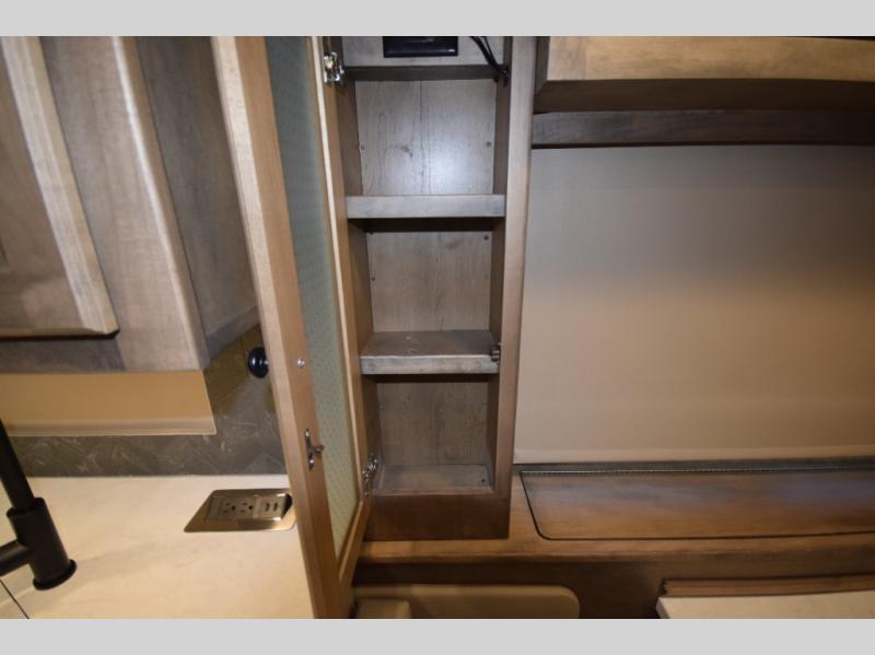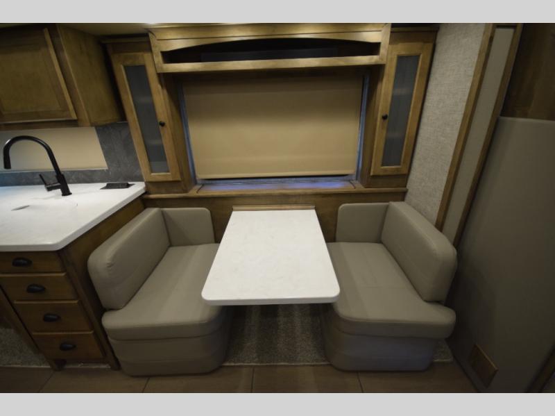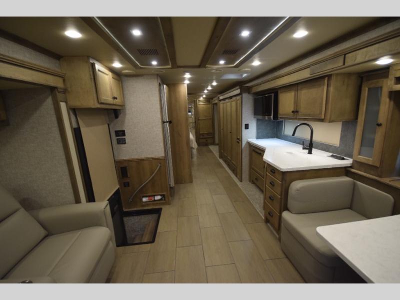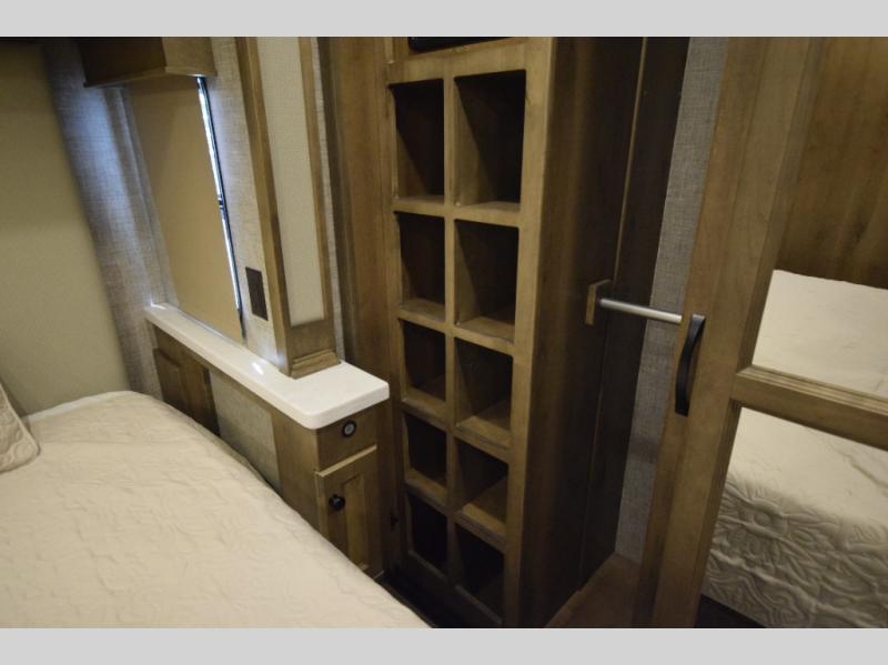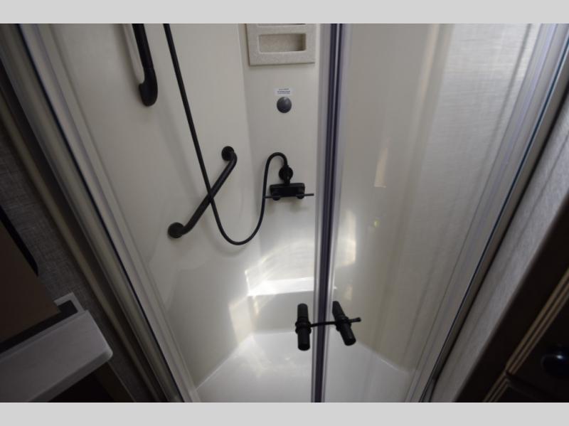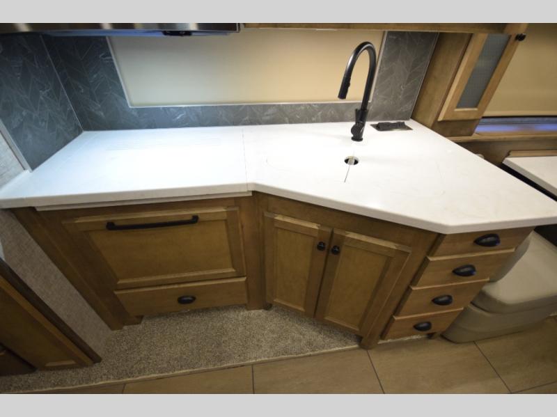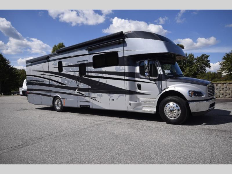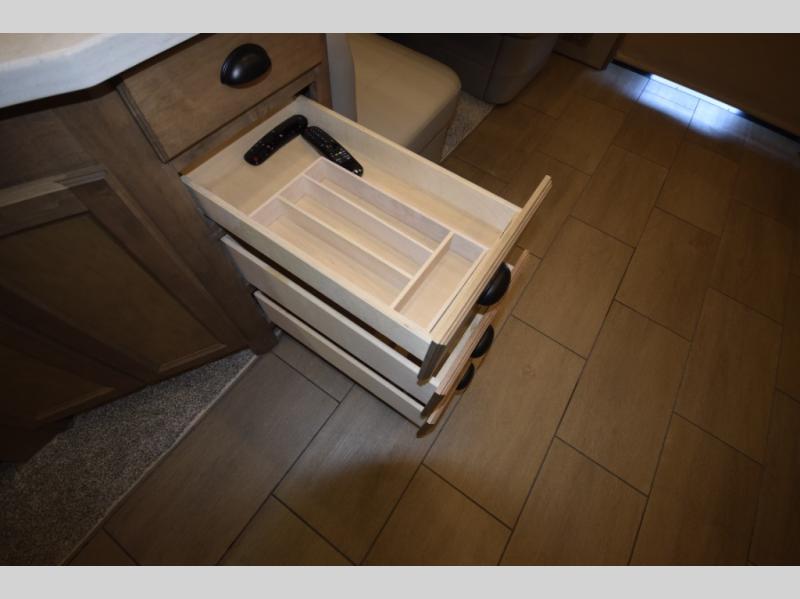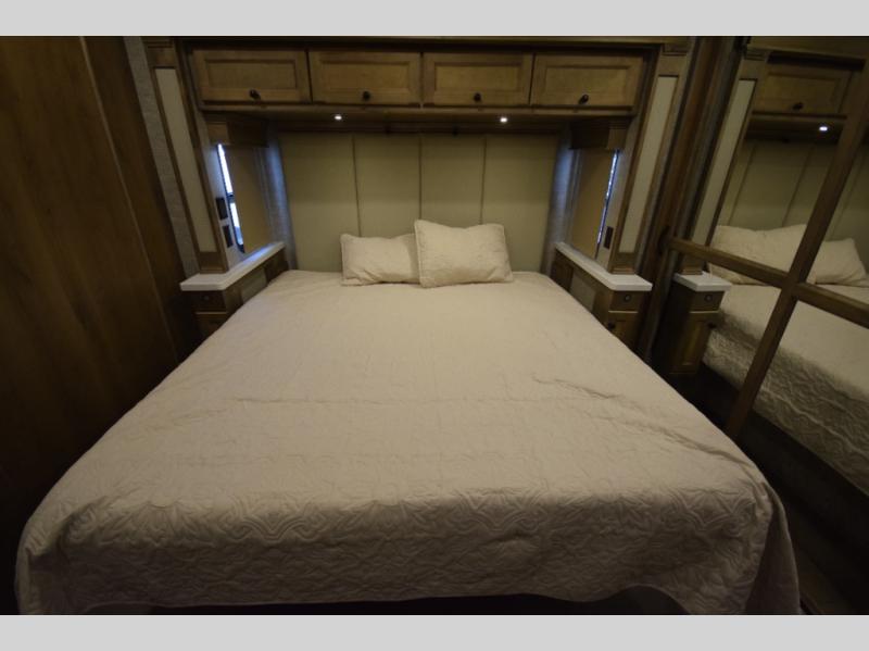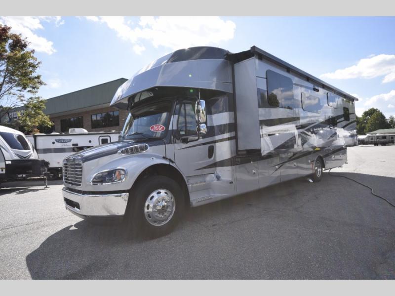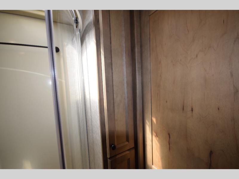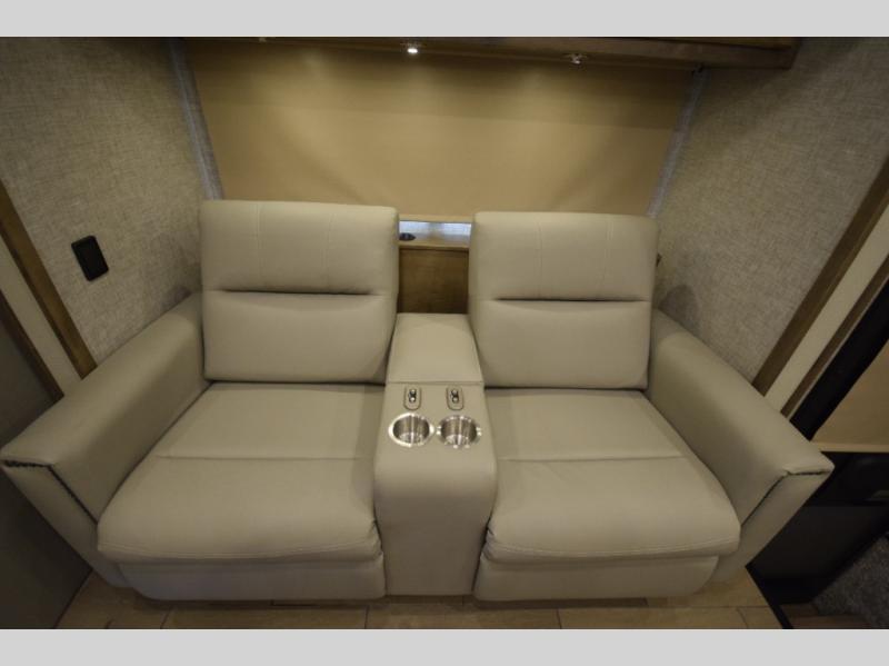 Riding on a Freightliner Custom S2RV chassis and powered by a 360 HP Cummins B6.7 diesel engine, this Super C delivers both muscle and finesse. With a 12,000 lb. towing capacity, you can bring your car, boat, or even a horse trailer. Features like the Trac-Tech NoSPIN rear axle, automatic traction control, and rear air suspension manual release ensure smooth driving on any terrain.
