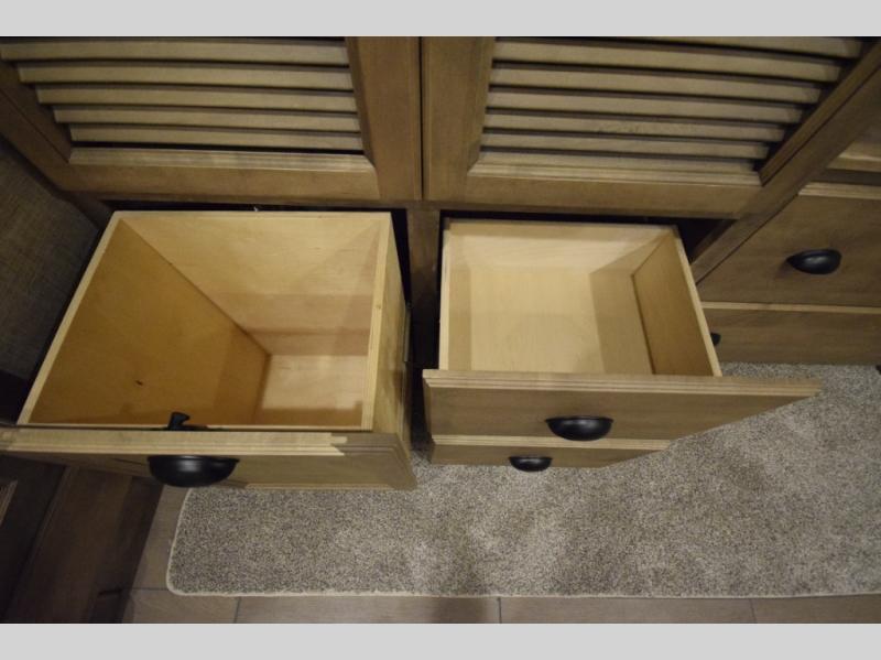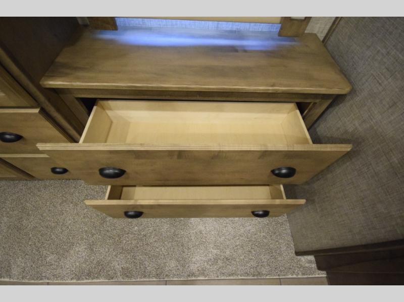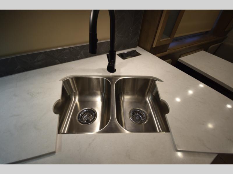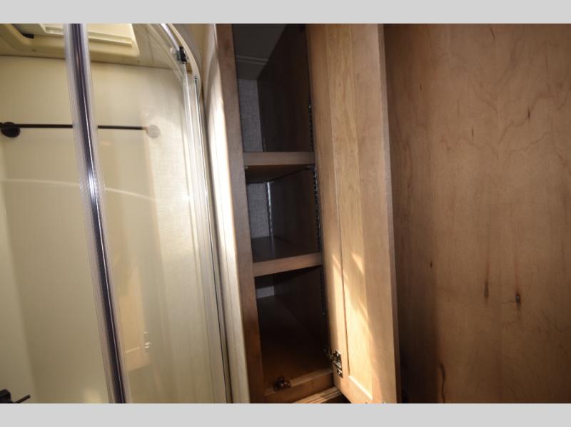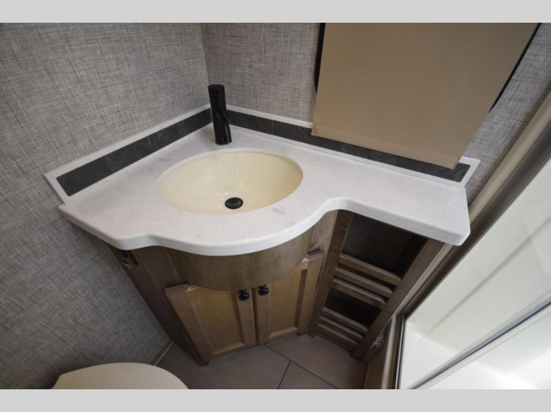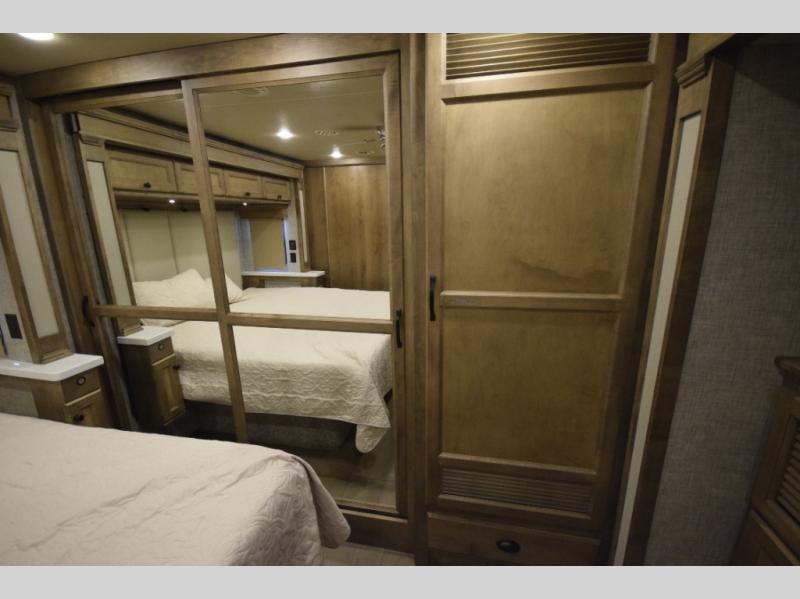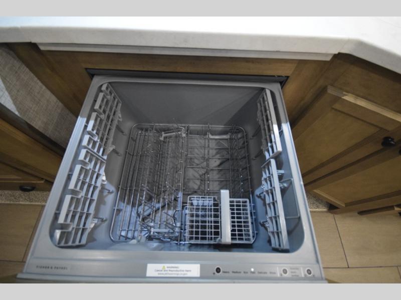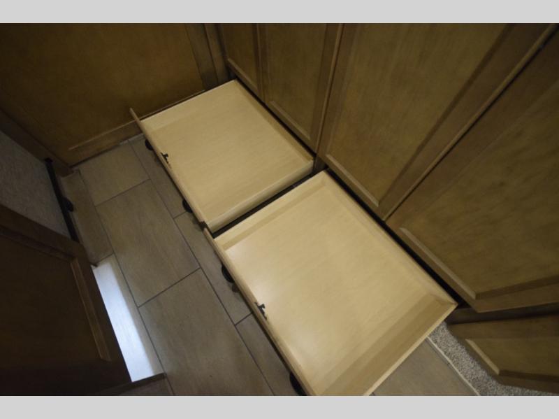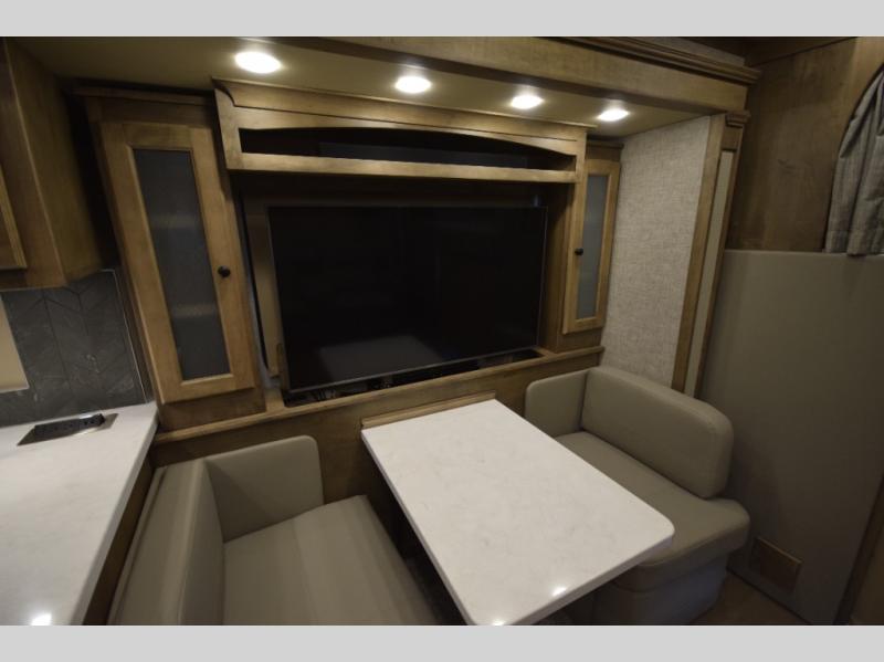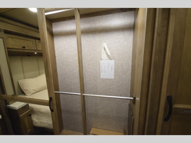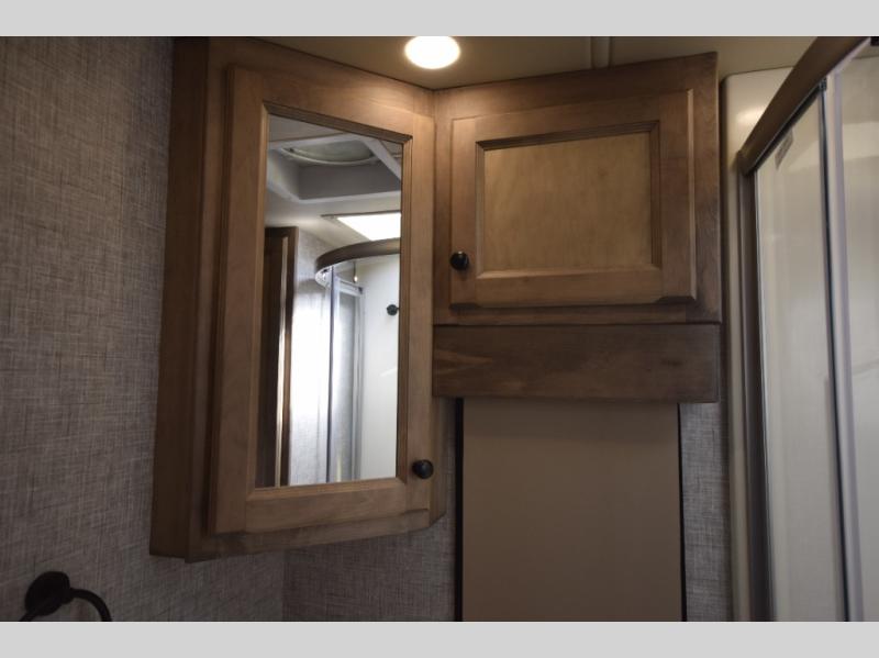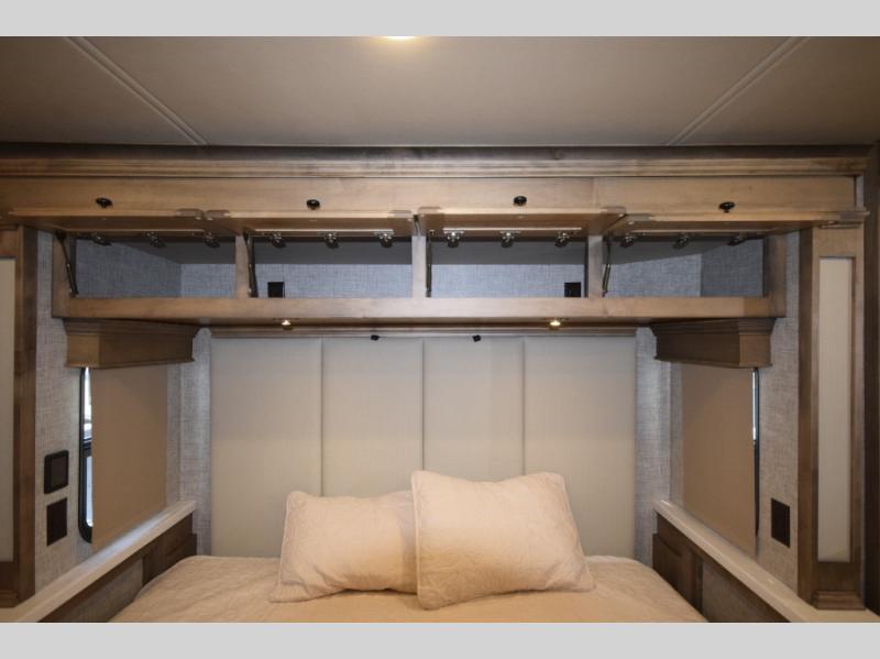 Riding on a Freightliner Custom S2RV chassis and powered by a 360 HP Cummins B6.7 diesel engine, this Super C delivers both muscle and finesse. With a 12,000 lb. towing capacity, you can bring your car, boat, or even a horse trailer. Features like the Trac-Tech NoSPIN rear axle, automatic traction control, and rear air suspension manual release ensure smooth driving on any terrain.