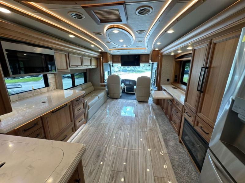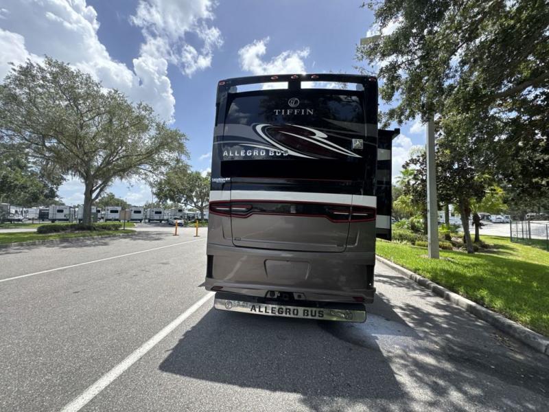 With any Allegro Bus Class A diesel coaches by Tiffin Motorhomes you will experience ultimate luxury, breakthrough technology, and unmatched power thanks to the 450 HP Cummins L9 engine. Each model sits upon a PowerGlide rear engine diesel chassis for a smooth ride, and you are sure to turn heads with the premium paint system. The captain's job is made easier than ever with the adaptive cruise control, the collision mitigation with forward warning and active braking, and the Valid LCD instrument cluster display with integrated leveling controls. This all-electric coach features an integrated roof-mounted Girard patio awning, an Onan 10.0 kW generator, and a hydronic heating system to name a few amenities. Inside, you'll love the polished solid surface countertops, the upscale appliances, and the Ultraleather furniture for all-around comfort.