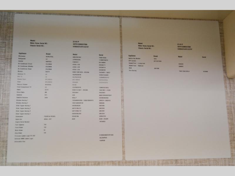 | TV Info | Cab Flat Panel TV, LR Lift TV, BR TV, Ext Flat Panel TV |