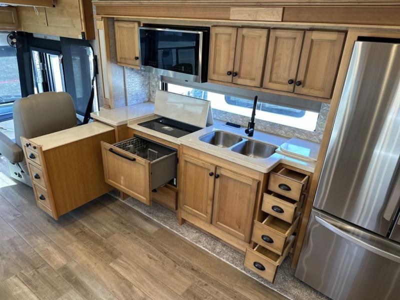 If you want the top of the line, the most luxurious, and the highest standard, the Tiffin Motorhomes Allegro RED 360 Class A diesel motorhome is created for you! You will have air ride suspension, full air brakes, electronic stability control, and hydraulic automatic leveling jacks as some of the chassis features, and there are many electrical features that will catch your eye, like the Truma gas continuous water heater, digital TV antenna, Extraordinaire A/C system, external tripod satellite hook-up, and Spyder multiplex controls with app compatibility. And that is only a fraction of the many more features found on the Allegro RED 360. While you're driving, you'll have a color back-up monitor to help you maneuver into parking spots, and you have the ability to add an optional central vacuum, stacked washer/dryer, Gold Heat heated tile floor, and in-dash navigation system, just to name a few of the many options.