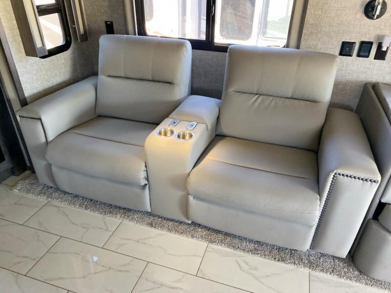 If you want the top of the line, the most luxurious, and the highest standard, the Tiffin Motorhomes Allegro RED 360 Class A diesel motorhome is created for you! You will have air ride suspension, full air brakes, electronic stability control, and hydraulic automatic leveling jacks as some of the chassis features, and there are many electrical features that will catch your eye, like the Truma gas continuous water heater, digital TV antenna, Extraordinaire A/C system, external tripod satellite hook-up, and Spyder multiplex controls with app compatibility. And that is only a fraction of the many more features found on the Allegro RED 360. While you're driving, you'll have a color back-up monitor to help you maneuver into parking spots, and you have the ability to add an optional central vacuum, stacked washer/dryer, Gold Heat heated tile floor, and in-dash navigation system, just to name a few of the many options.