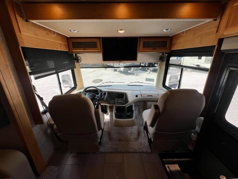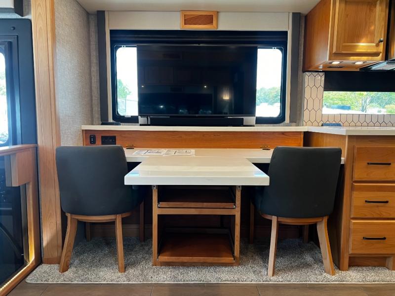 Up front, the UltraLeather flip-and-fold sofa bed and booth dinette convert into comfortable sleeping areas for guests, and the large mid-ship flat panel TV with a soundbar ensures everyone has the best seat in the house.