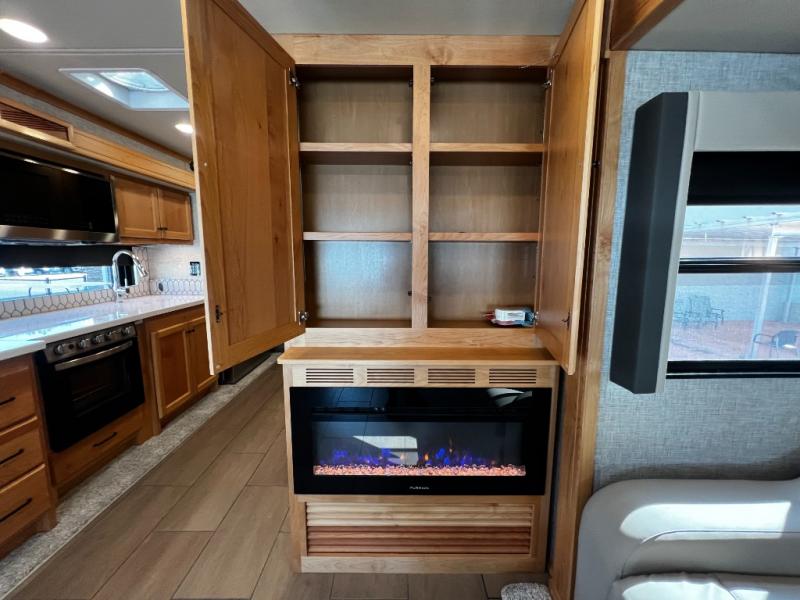 Powered by the Ford 7.3L V8 engine and built on a rugged yet lightweight tubular aluminum skeleton, factory installed Liquid Springs System, the Open Road Allegro offers dependable performance and smooth handling. Arrive with confidence thanks to hydraulic automatic leveling jacks, electronic stability control, and traction control for peace of mind in any conditions.