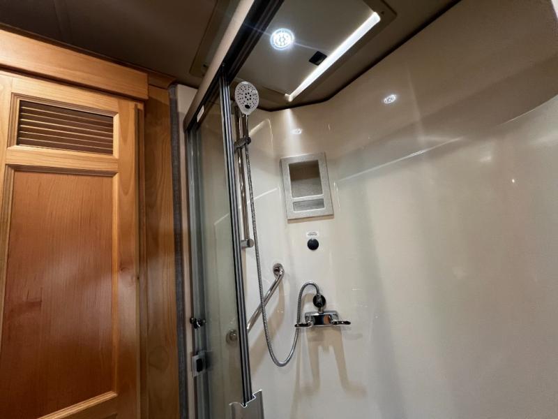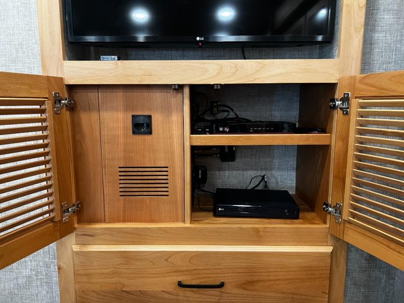 Tech-savvy travelers will love the Spyder multiplex system with app control, putting lighting, climate, and system functions at your fingertips. The Extraordinaire™ AC system keeps the cabin cool and quiet even on the hottest days, while the exterior LED TV with soundbar turns any campsite into a private theater under the stars.