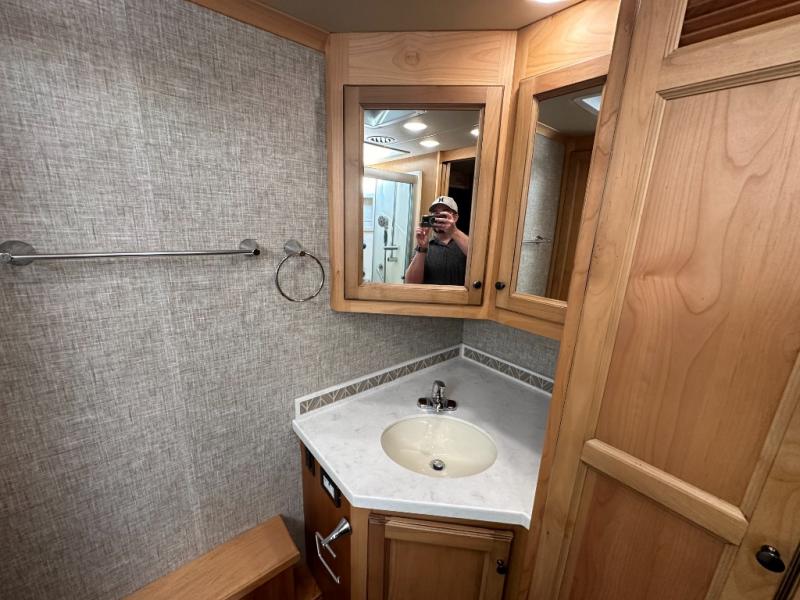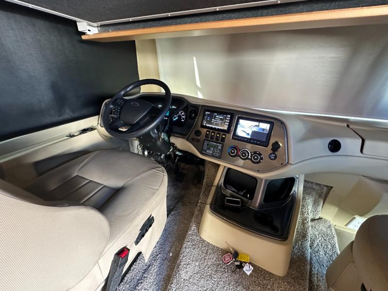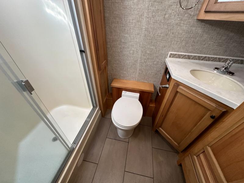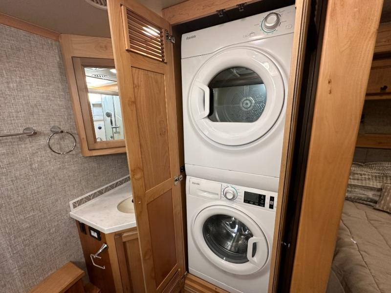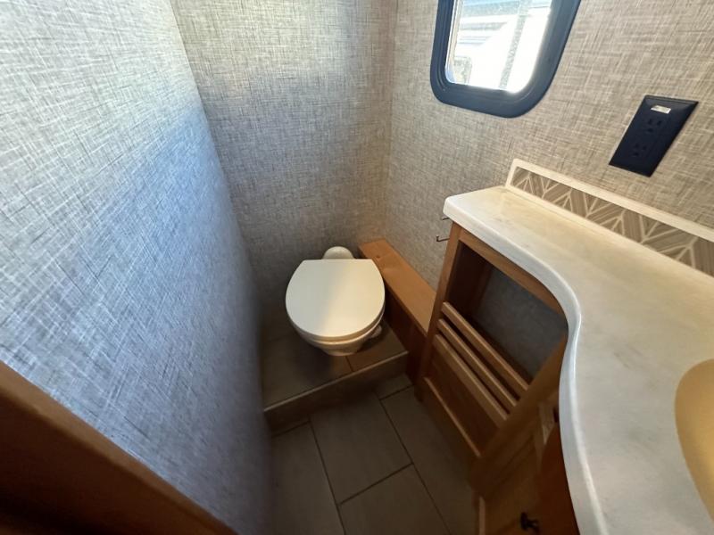 It's a clean decision with a bath and a half to choose this motorhome for your travels! The full rear bathroom has a shower, an overhead cabinet with linen storage, and an area prepped to add an optional washer and dryer so you can extend your trips with clean clothes. After a long day of traveling, you can relax on the recliner or the ultraleather flip and fold sofa bed across from the flat panel TV with an optional fireplace below it. The booth dinette offers a comfortable place to enjoy meals, play games, and even transform into an extra sleeping space or if you need to get some work done while on the road then you can switch it out for the optional dinette with computer work station. The exterior TV lets you breathe in some fresh air without missing the big game!