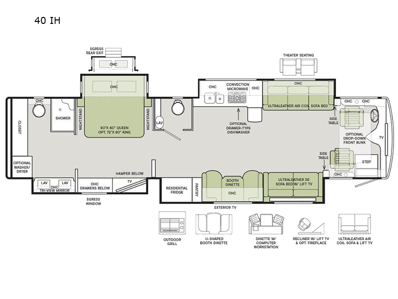 Tiffin Motorhomes Phaeton 40 IH Class A diesel motorhome highlights: