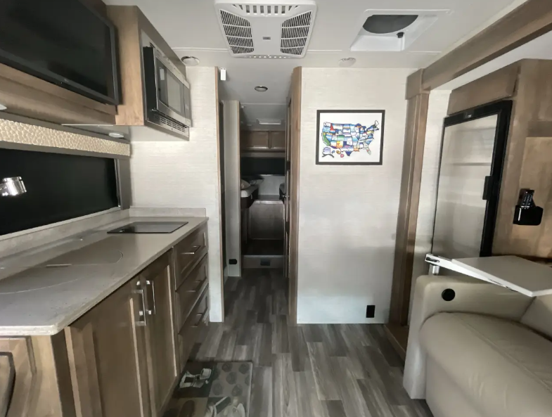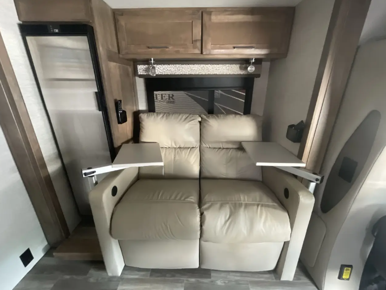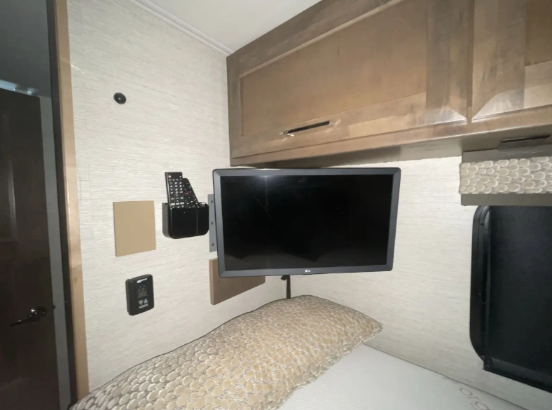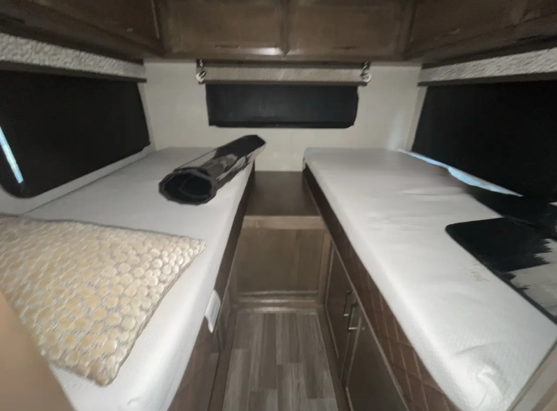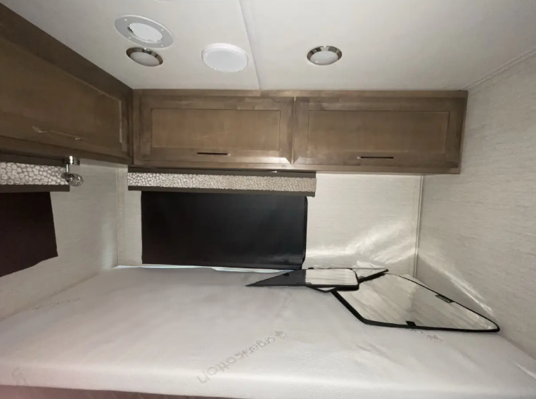 Above the cab, the updated overhead bunk provides additional sleeping space for guests or extra storage, making this coach great for small families or travel companions.