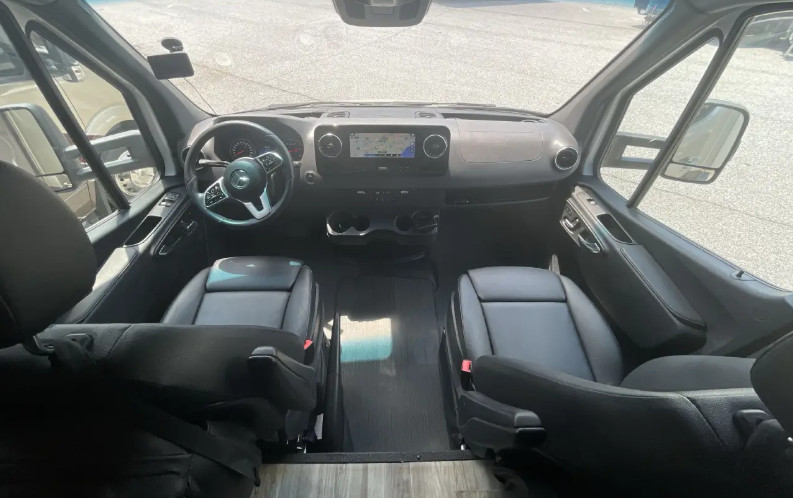Built on the Mercedes-Benz Sprinter chassis, this coach comes equipped with the 7G-Tronic Plus 7-speed automatic transmission, ensuring smooth acceleration and exceptional fuel efficiency. It includes advanced safety features, heated adjustable mirrors, leather seats, and the cutting-edge MBUX multimedia system with 10.25" touchscreen and smartphone integration via Apple CarPlay and Android Auto.