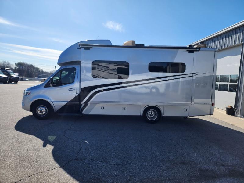 With each Wayfarer Class C diesel motorhome by Tiffin Motorhomes the Mercedes-Benz chassis delivers smooth, powerful handling with the 7G-Tronic plus 7-speed automatic transmission that helps you accelerate from a stop and conserves fuel on the highway, plus the advanced safety features. The full-body paint system features premium grade paints sealed with three layers of clear coat. The driver's compartment includes the MBUX multimedia system with 10.25" touchscreen, smartphone integration for Apple Carplay and Android Auto, plus black leather, heated, adjustable driver and passenger seats, and luxurious styling and amenities, plus ample storage are found throughout. Choose the extraordinary, take a Wayfarer on the road today!