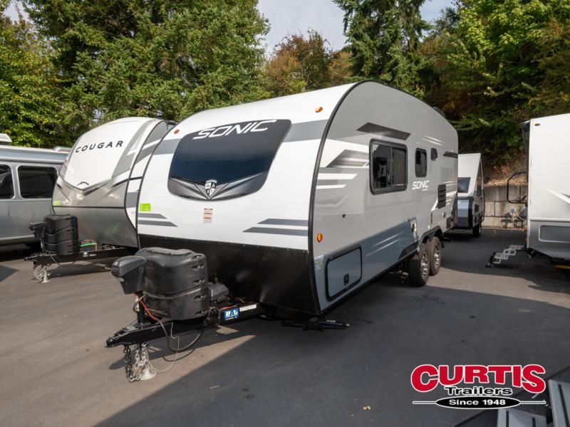 With any Sonic travel trailer by Venture RV, you begin with Next Generation in RV frame technology with the NXG Huck-bolt frame, AZDEL Onboard composite panels, tongue and groove plywood floor decking, radiant foil bubble insulation-wrapped tanks, 360-degree residential fiberglass insulation and radiant foil insulation, plus a forced-air heated and enclosed underbelly which is part of the Weather-Shield package. There is a Highway Package that comes mandatory, and the Discovery Package 1.3 provides a motion light in the bathroom, a dish drying sink cover, and the Venture LevelMate Pro, a power tongue jack, and WIFI prep to mention a few features. Get ready for comfort and style in a Sonic ultra-lightweight, tandem-axle travel trailer of your choice!
