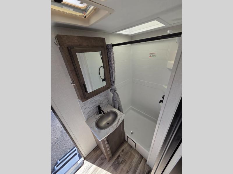 Every Venture RV SportTrek lightweight travel trailer is constructed to offer peace of mind and the comforts of home! Their purposeful residential kitchens are packed with handy features like a recessed gas cooktop with glass cover for more countertop space, a sink cover to drain food and dishes which can be rolled out of the way for sink use, and continuous countertops. You will find plenty of storage throughout with unique areas like the under-seat removable storage tubs below the dinette cushions and the StorMore nightstands on either side of the bed behind the full-length closets. The magnetic slam-latch baggage doors to the spacious pass-through storage area will hold your outdoor gear in place. They even come with a hot and cold exterior shower and SporTrek's Weather Shield which includes a radiant foil barrier, forced heat, enclosed underbelly, enclosed gate valves, and a reflective PVC roof membrane. What more could you want, come find your favorite model today!
