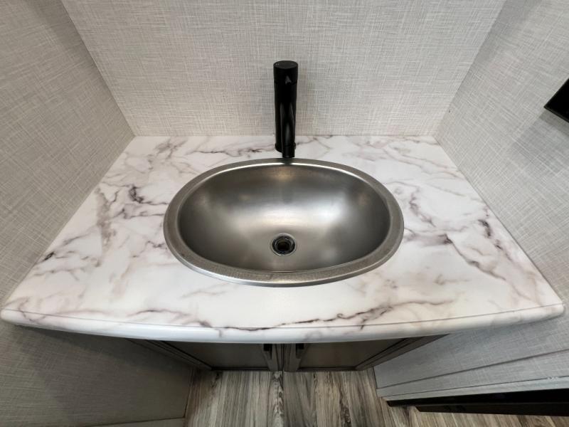 An elegant design and new features come with every one of these Venture RV SportTrek Touring Edition travel trailers! The NXG Huck bolt frame holds these units together and a walkable roof covers them. Heads will turn down the highway and at the campsite with an upgraded graphics package and a painted fiberglass front cap with integrated LED light. The exterior pass-through storage area has slam latch baggage doors with magnetic catches so you don't have to worry about them closing on you and a motion activated light to see your items clearly even at night. Luxury abounds throughout these units, especially with the mandatory Interior Luxury package which comes solid surface kitchen countertops, designer valances with fabric nightshades, two 30" frameless fireplaces, and Beauflor wood plank flooring that is easy to clean. Come find your favorite model today!